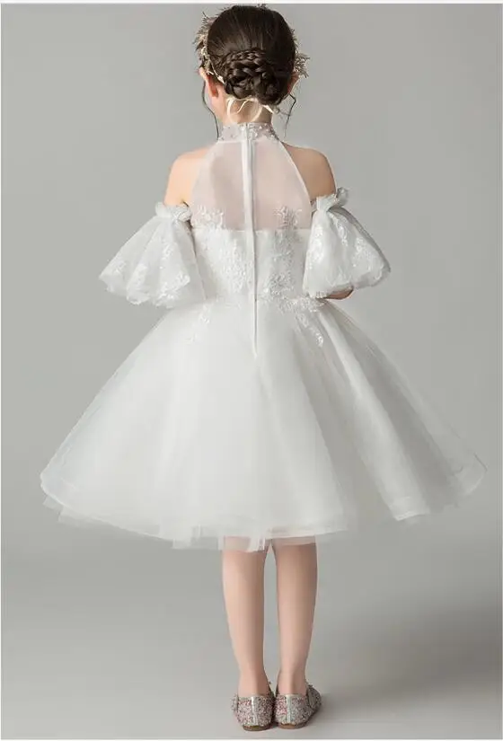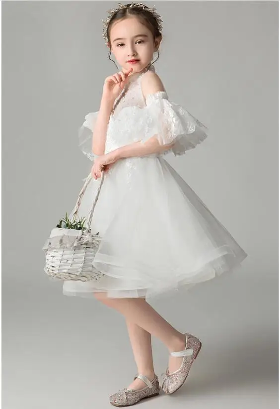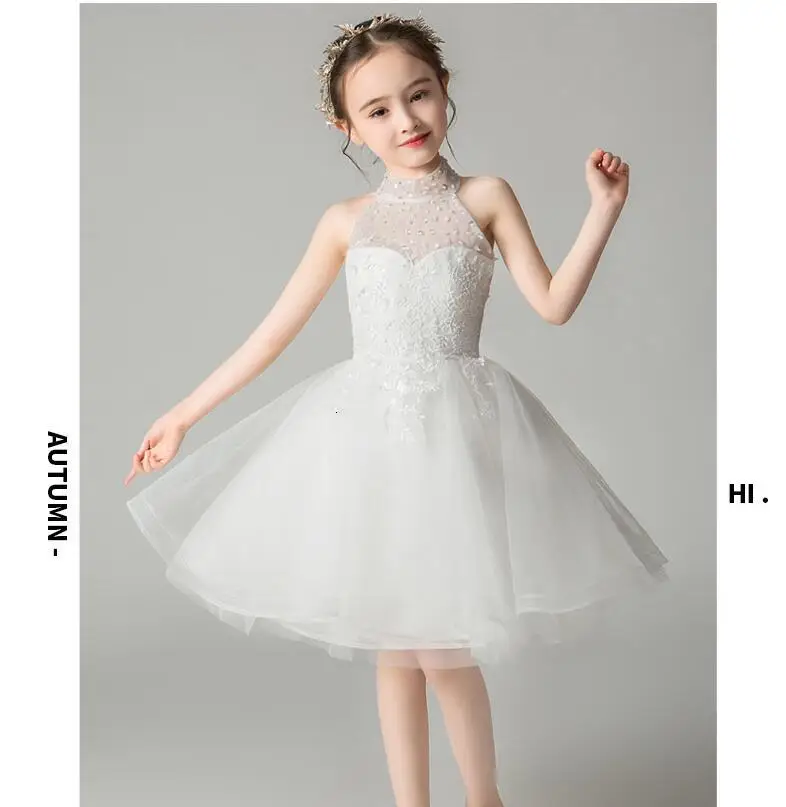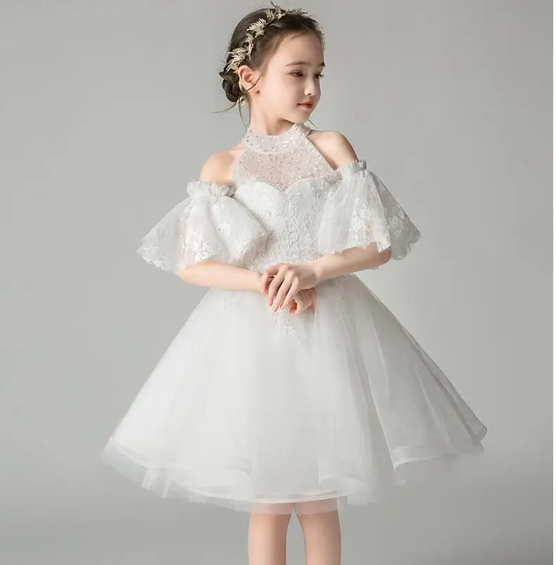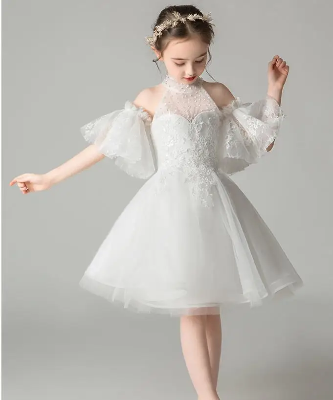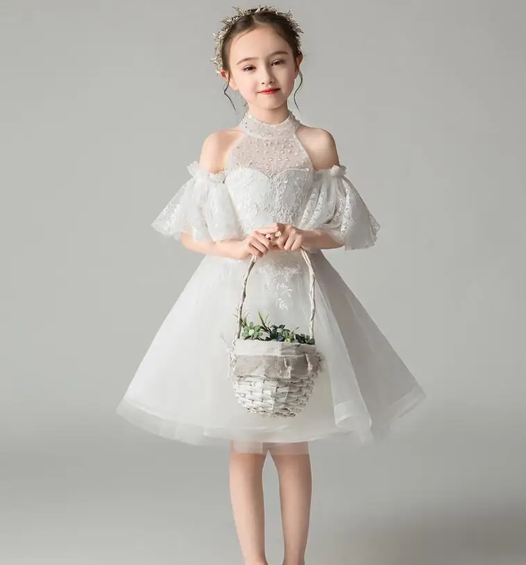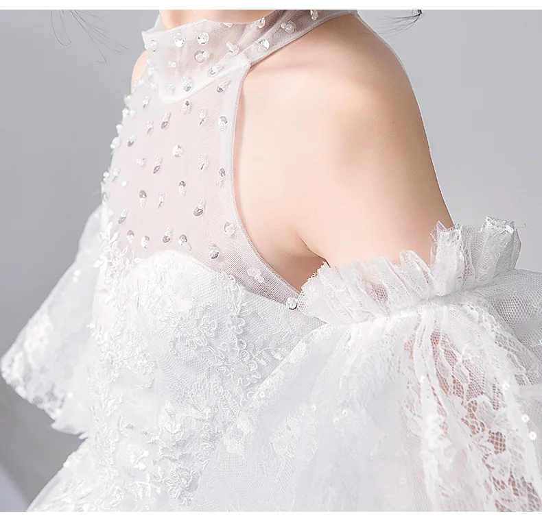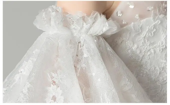 Тюлевое белое кружевное платье с блестками и бусинами для девочек, платье на крестины вечерние ринки, свадьбы, конкурса, платье для детей, одежда принцессы для девочек