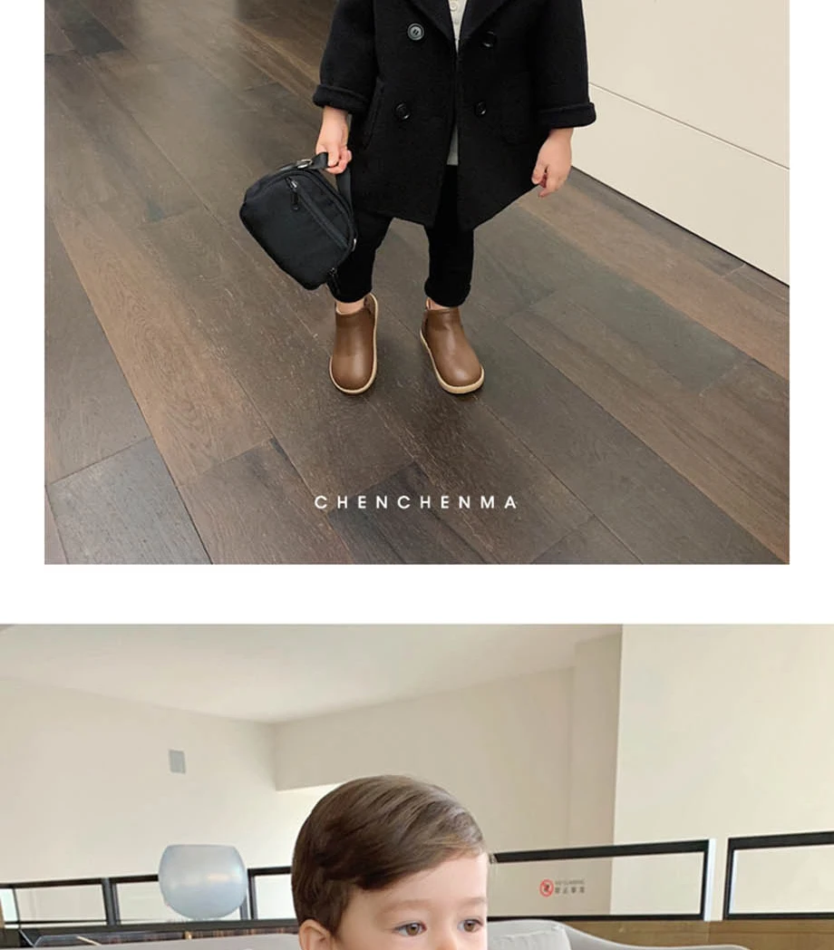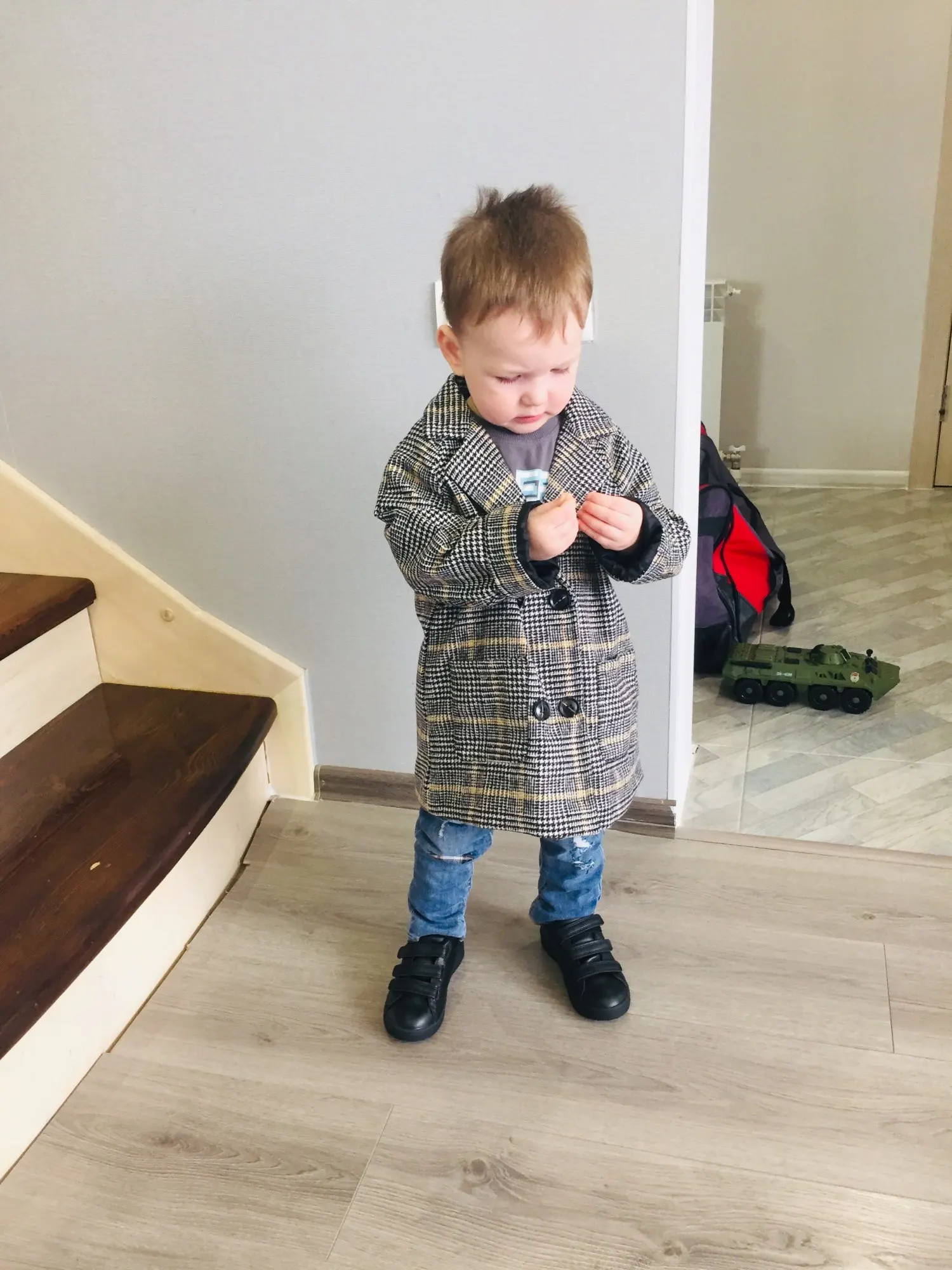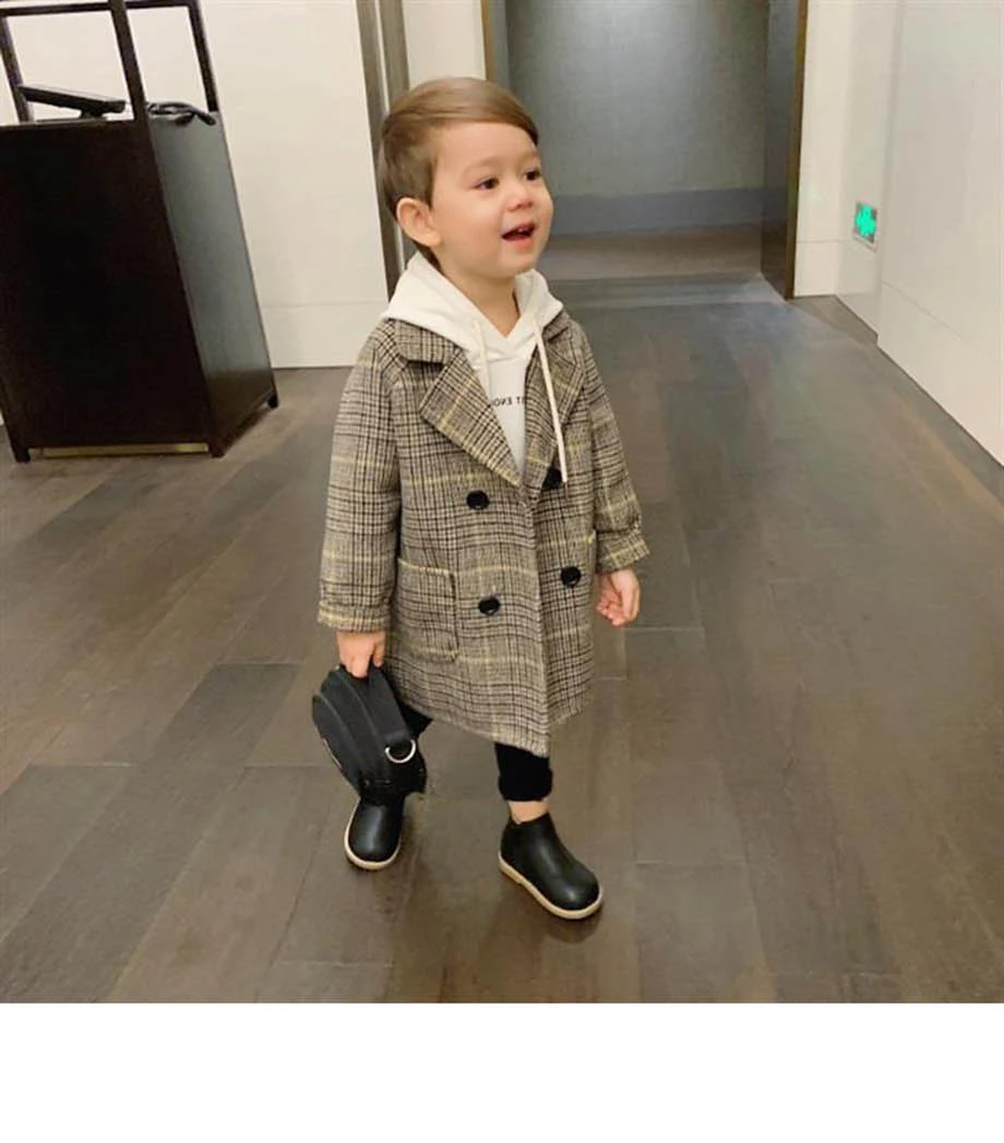 Зимние куртки в клетку для мальчиков и девочек, шерстяной двубортный тренч для маленьких мальчиков, Осенняя детская верхняя одежда с лацканами, пальто