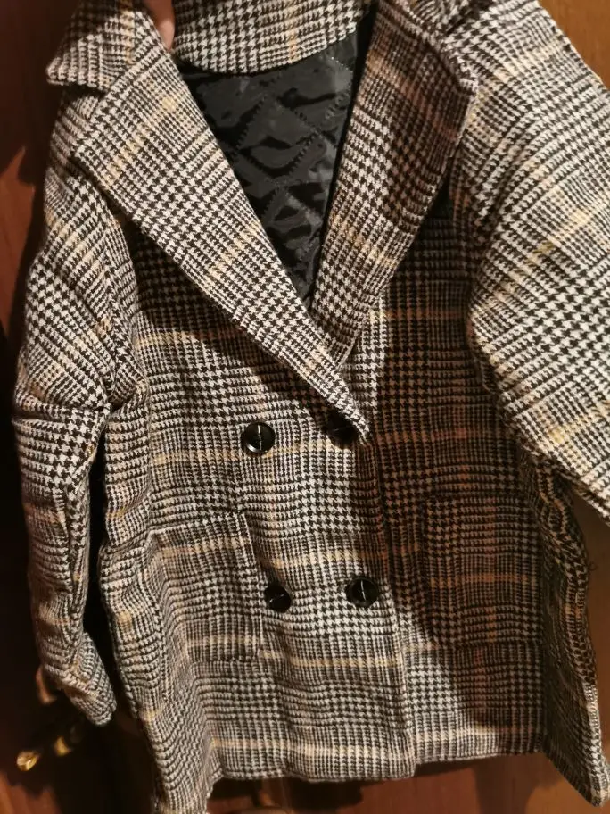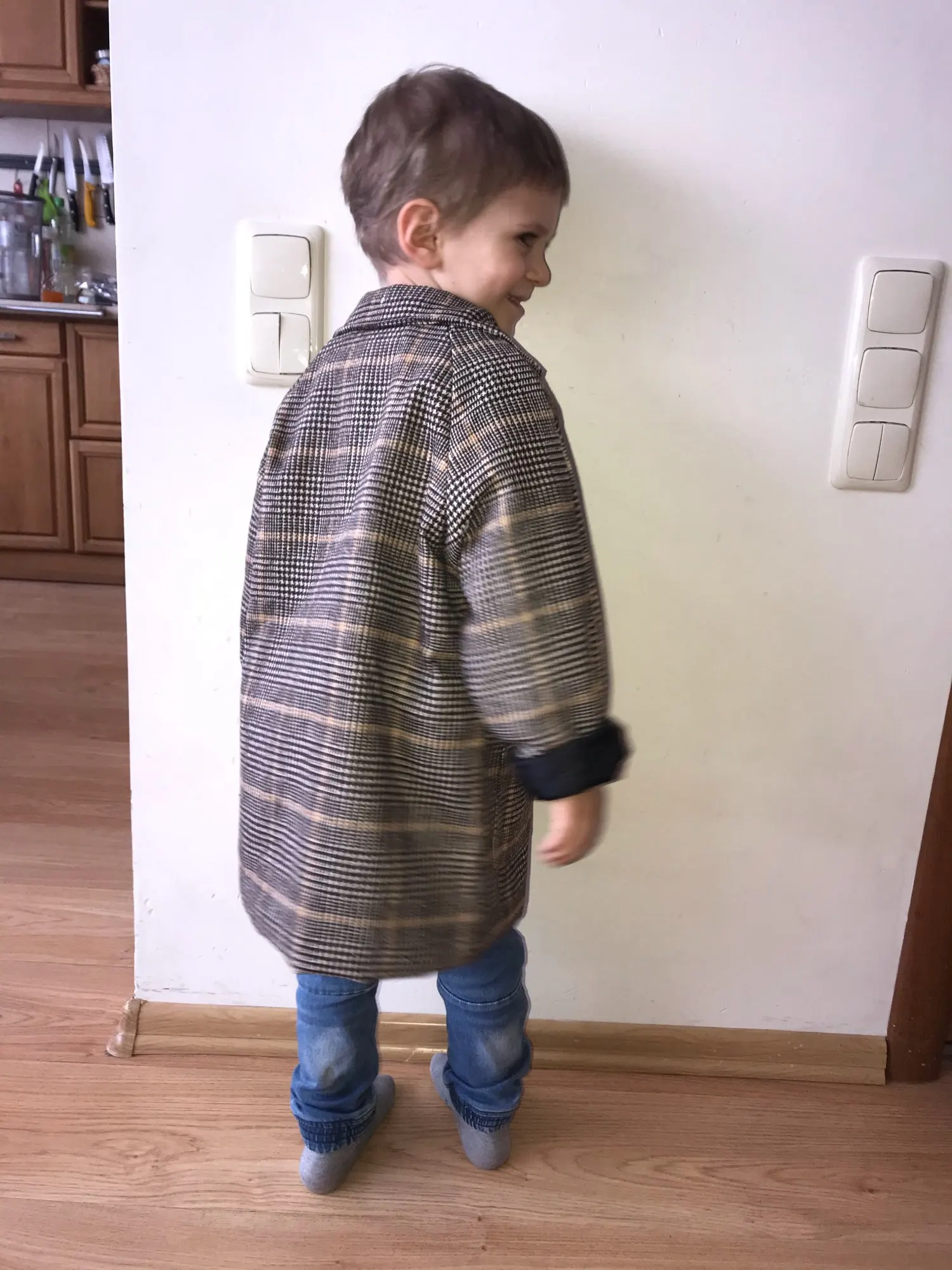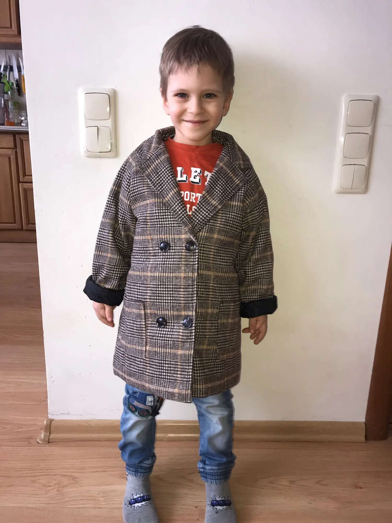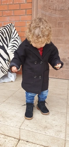 Крутое пальто-пиджак. Взяла 3Т,нам год и 2 месяца (13 кг) чуть большевато, но это не критично, хватит на подольше. Смотрится стильно. Я довольна. Дошло быстро после отправки, но отправляли очень долго, так как был китайский новый год. Хотя, когда заказывала другие вещи, их отправляли сразу, независимо от праздника.