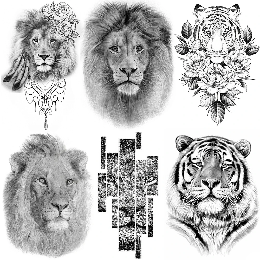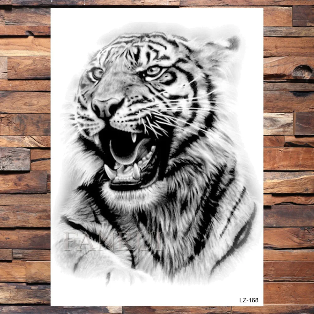 Могучий лев король зверей татуировки Временные мужские женский боди-арт мужские боди-арт искусство поддельные татуировки реалистичные Племенной Тигр наклейки-тату на руку макияж ног
