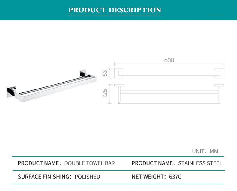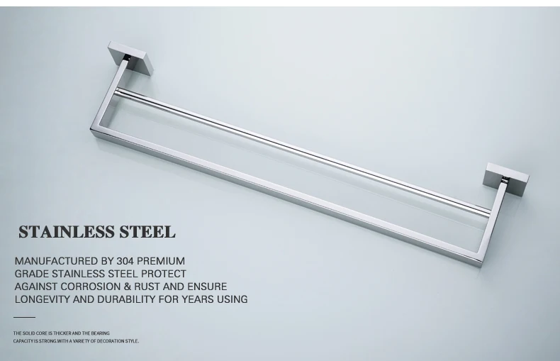 Особенности и характеристики:Двойной рельсовый полотенцесушитель/полотенцесушительМатериал: Прочная нержавеющая сталь SUS 304Использование: ванная комната/душевая комната/туалетОтделка: высококачественное хромированное покрытиеТип: аксессуары для ванной комнатыУстановка: НастенныйВключая все монтажные фитинги