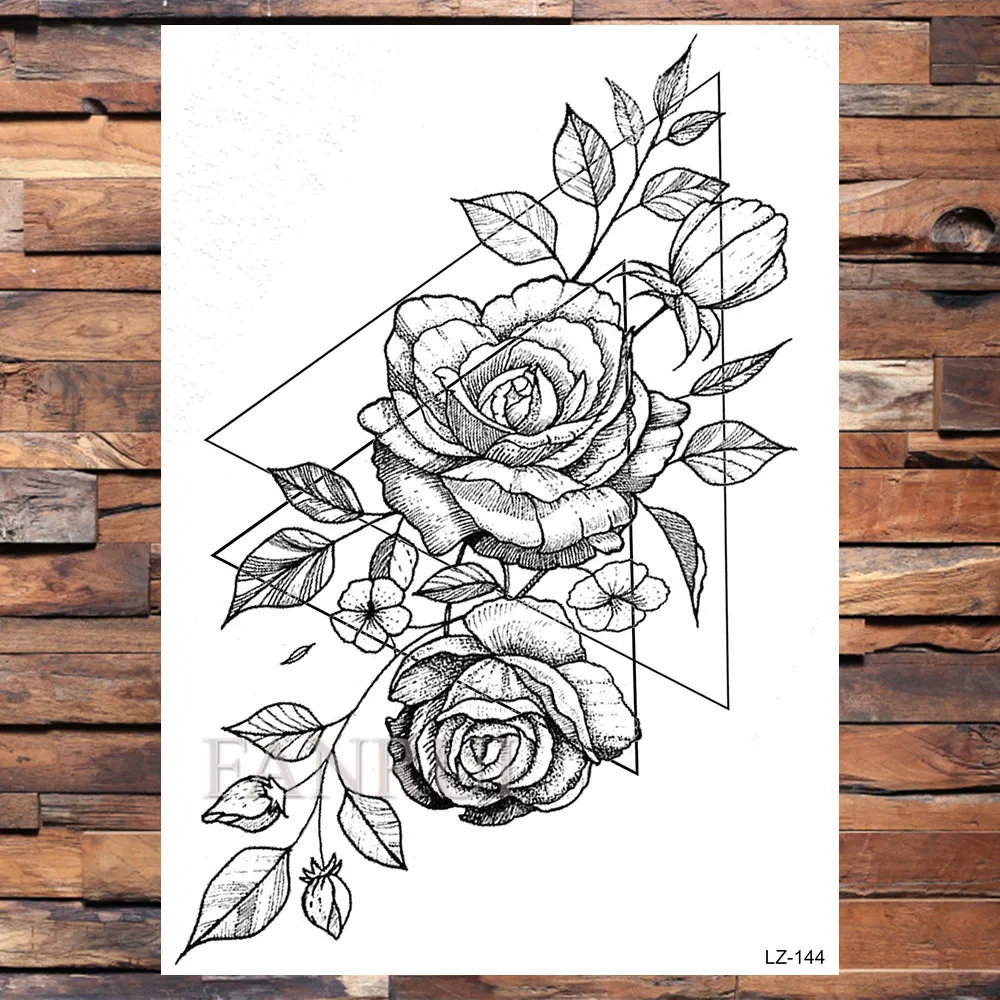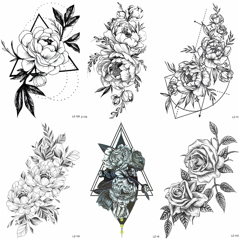 1 шт реалистичные пионы цветок татуировки Временные Цветы боди-арт татуировки для женщин Черная поддельная наклейка-тату Розы Цветочные наклейки Bloosom