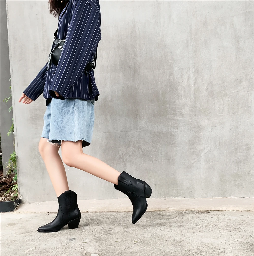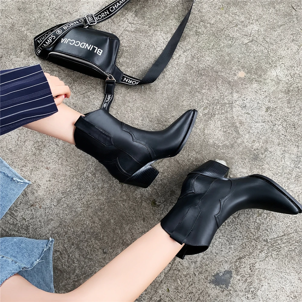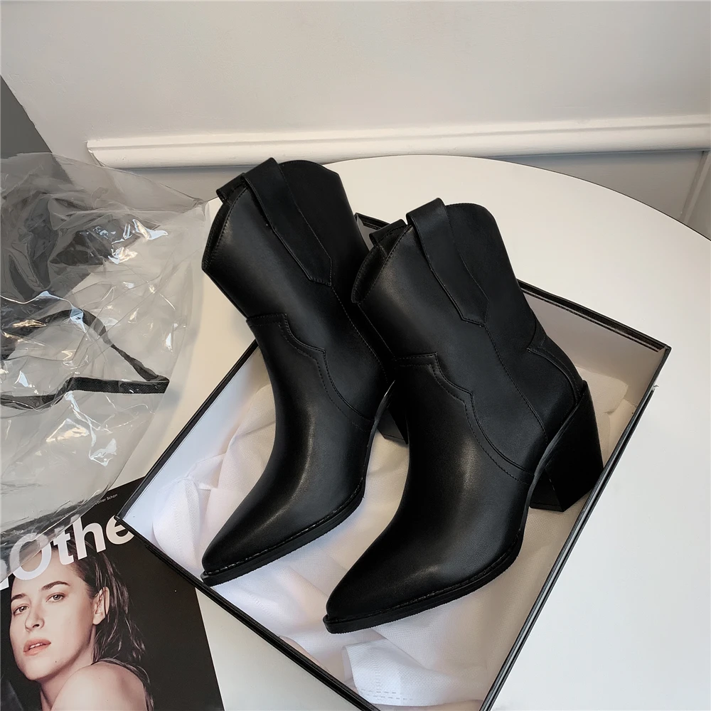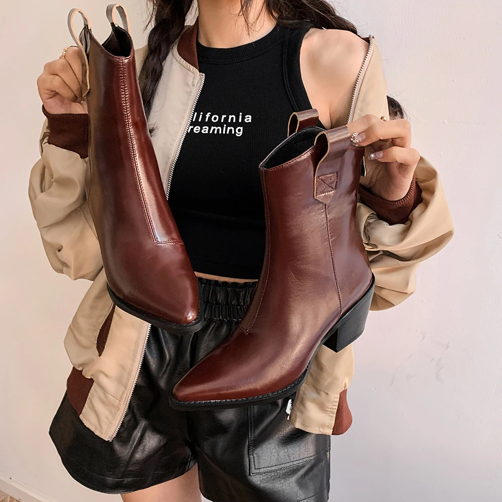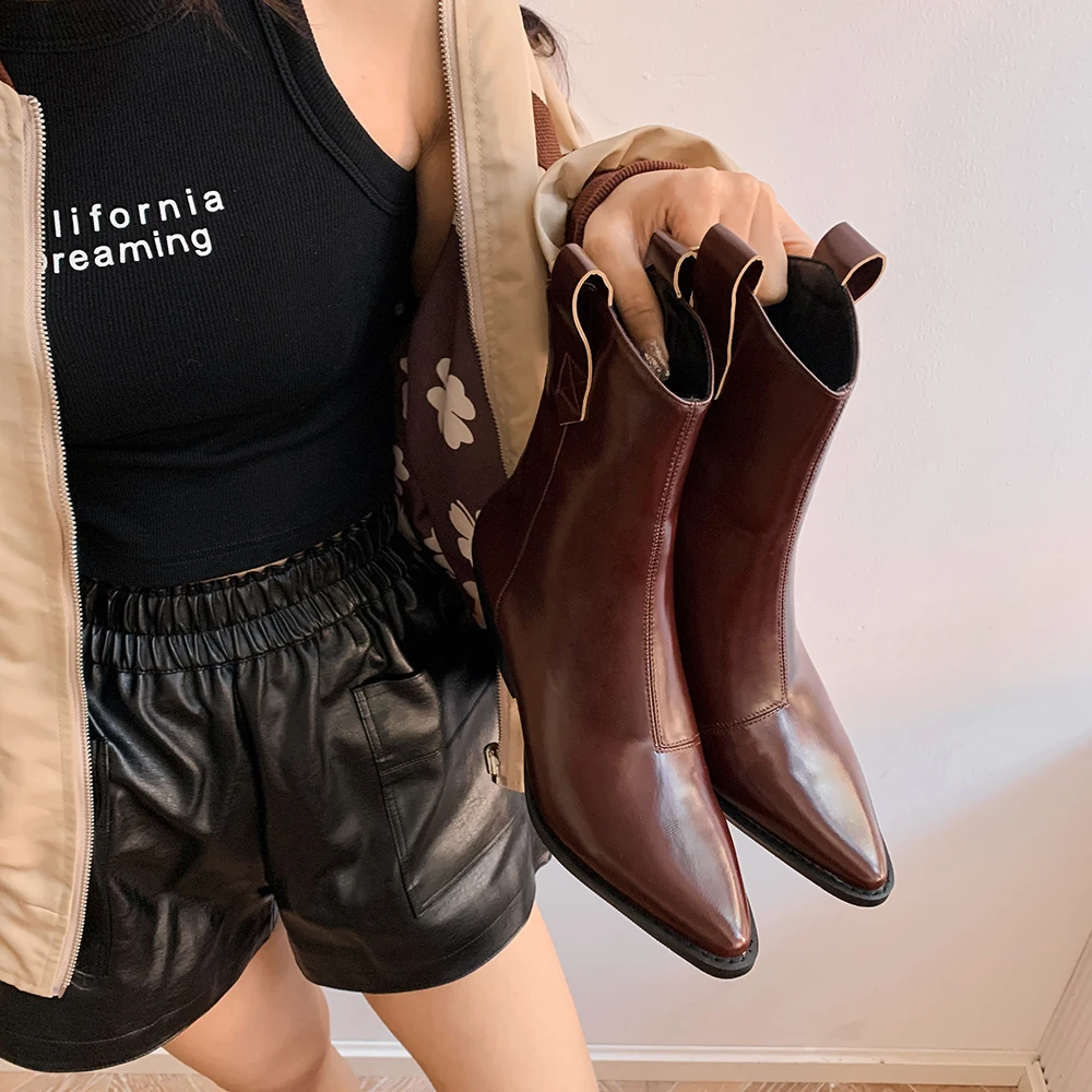 Женские полусапожки Челси с острым носком, ковбойские полусапожки на танкетке, 2022