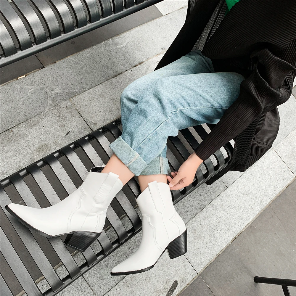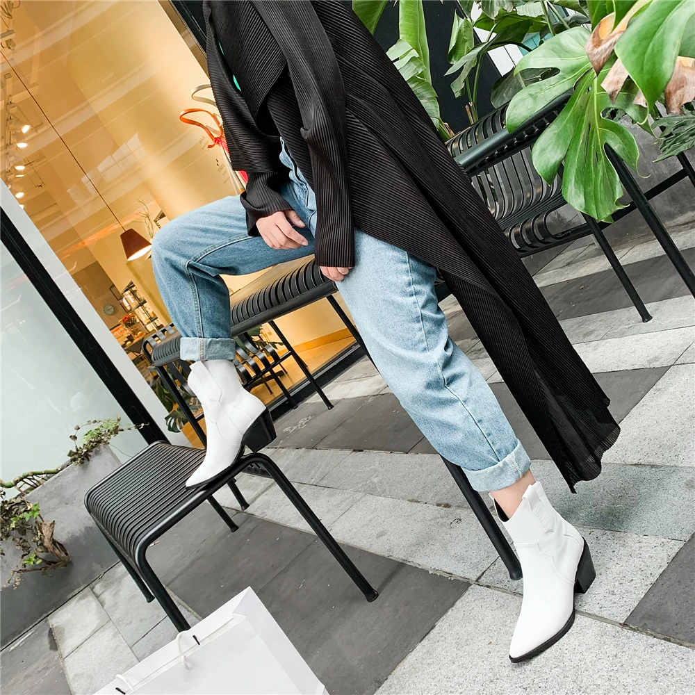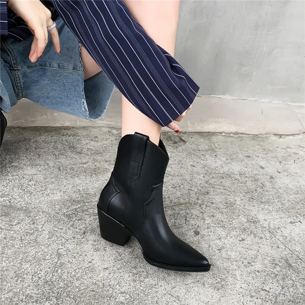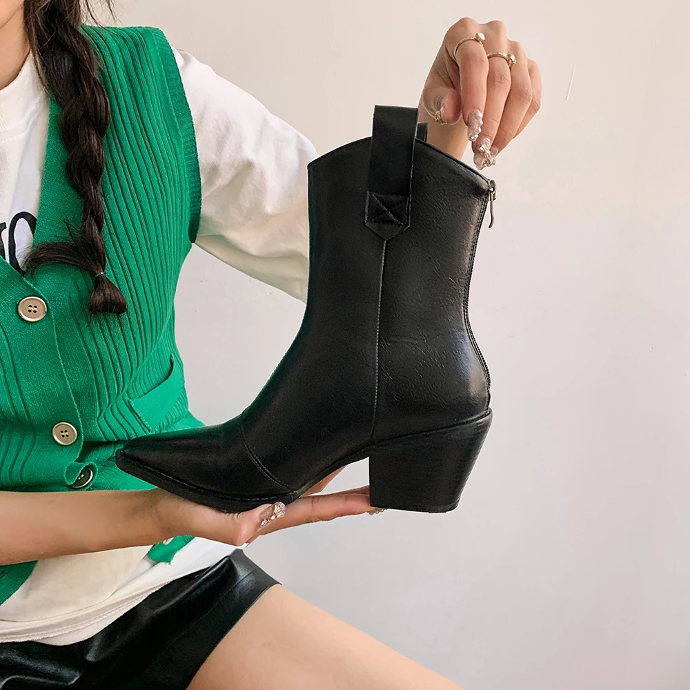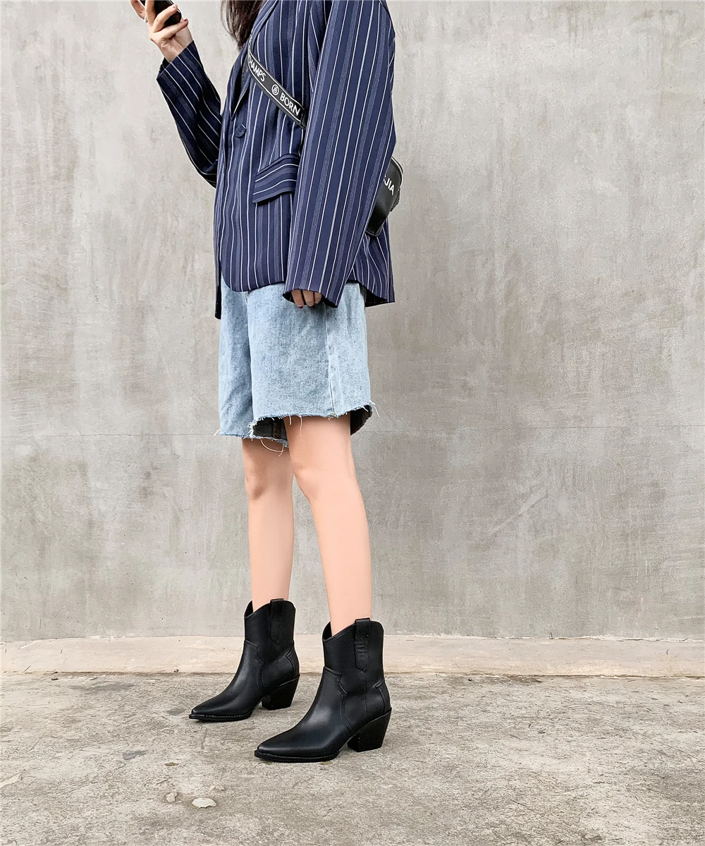 Женские полусапожки Челси с острым носком, ковбойские полусапожки на танкетке, 2022