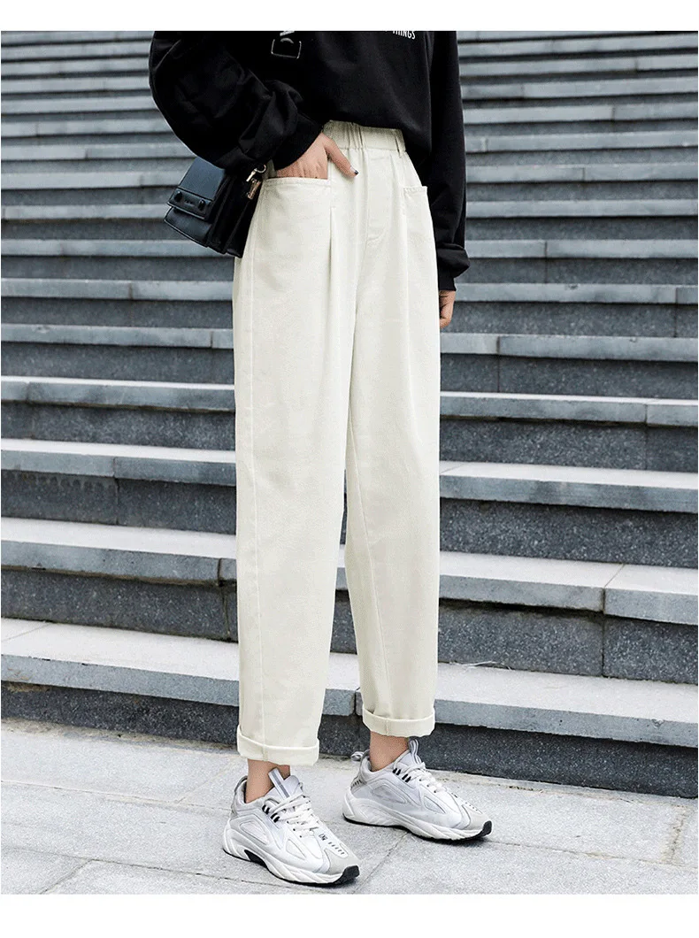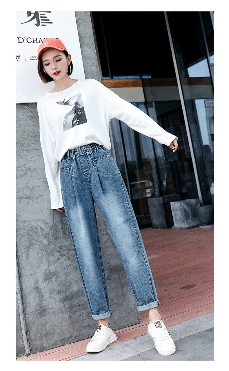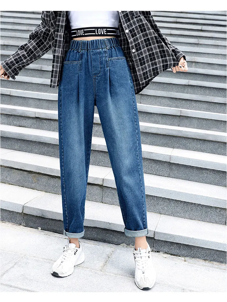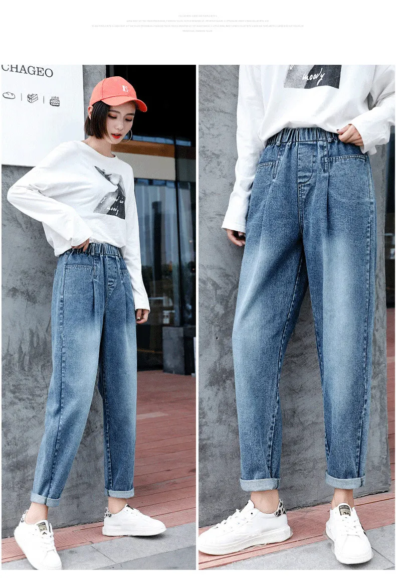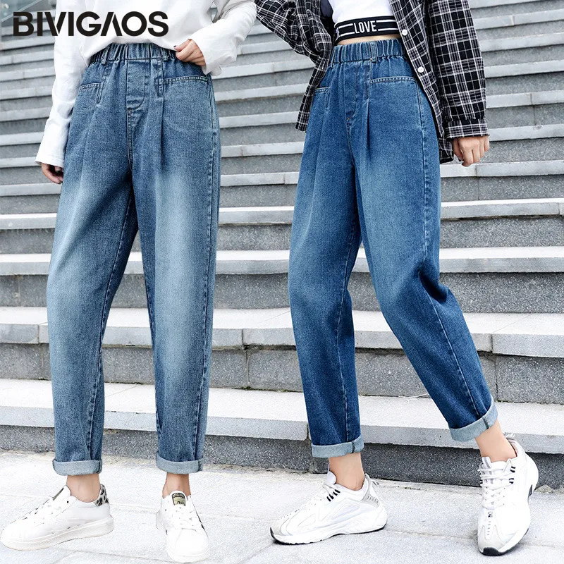 BIVIGAOS 2019 Осенние новые прямые джинсовые брюки с карманами укороченные джинсы Свободные повседневные джинсы с эластичной резинкой на талии для женщин бойфренды джинсы женские