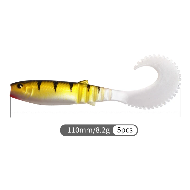 Мередит каннибал изогнутый хвост 110 мм 5 шт. 8,2 г искусственные мягкие приманки для рыбалки Shad свимбейт в форме червя джиг голова рыболовные приманки силиконовые