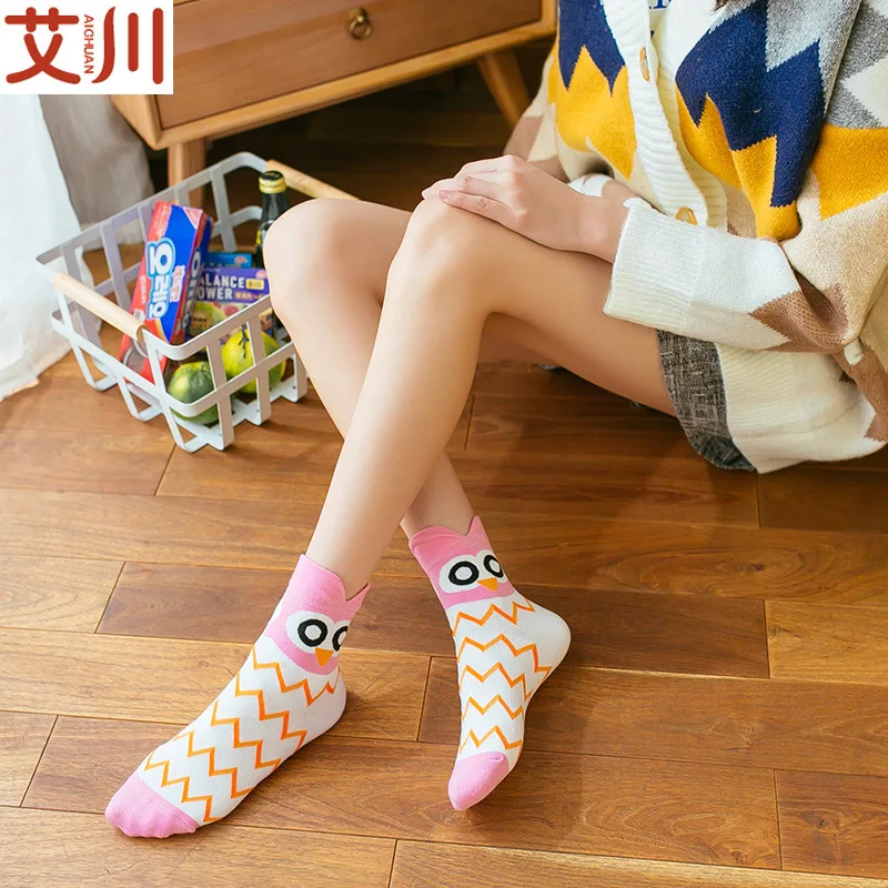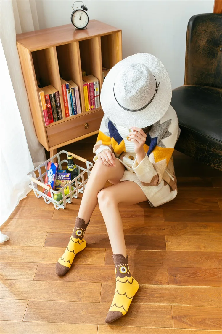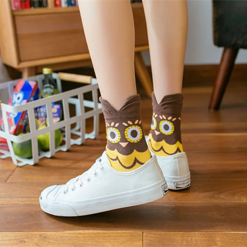 Повседневные женские носки в Корейском стиле, забавные хлопковые носки для девочек с рисунками животных, милые модные индивидуальные носки