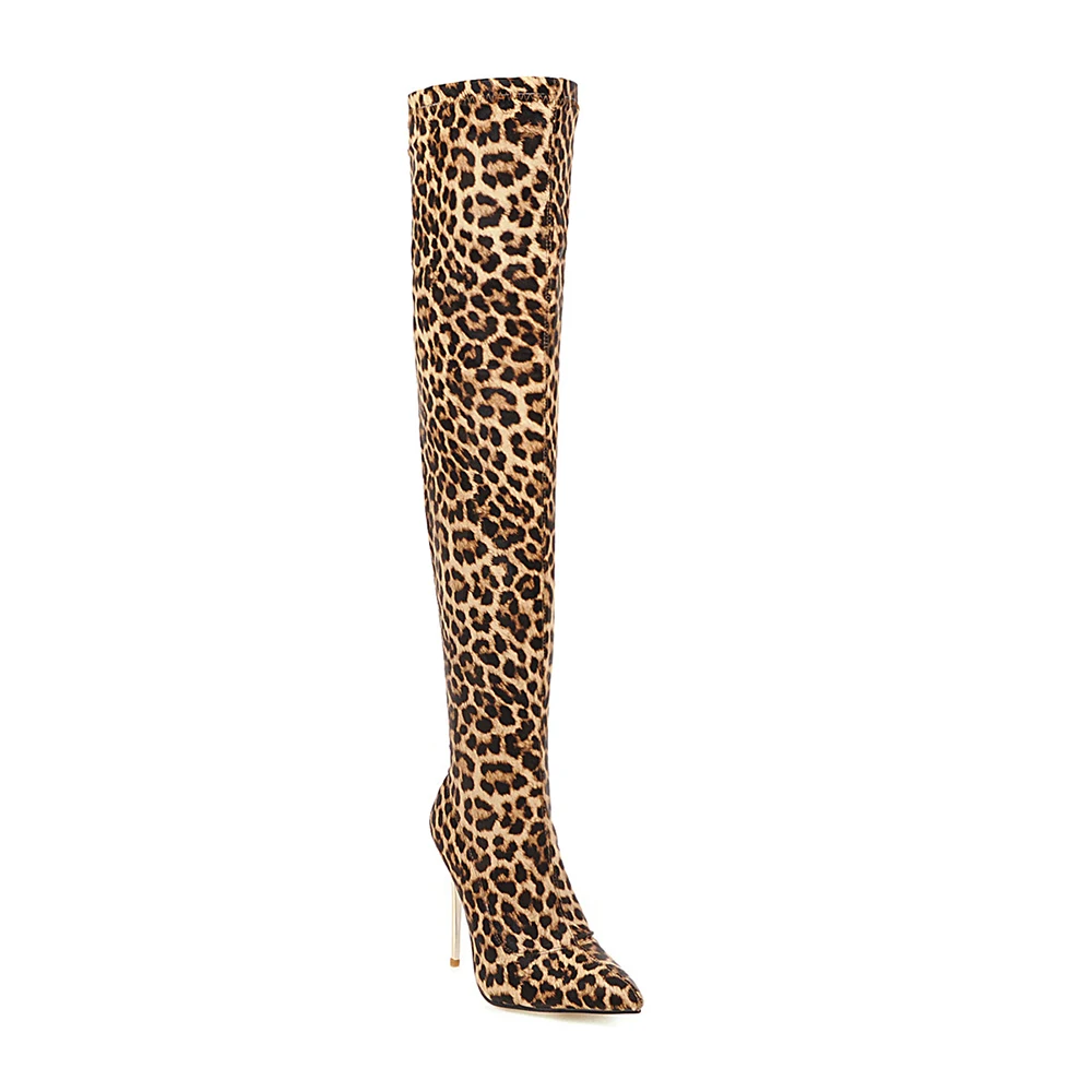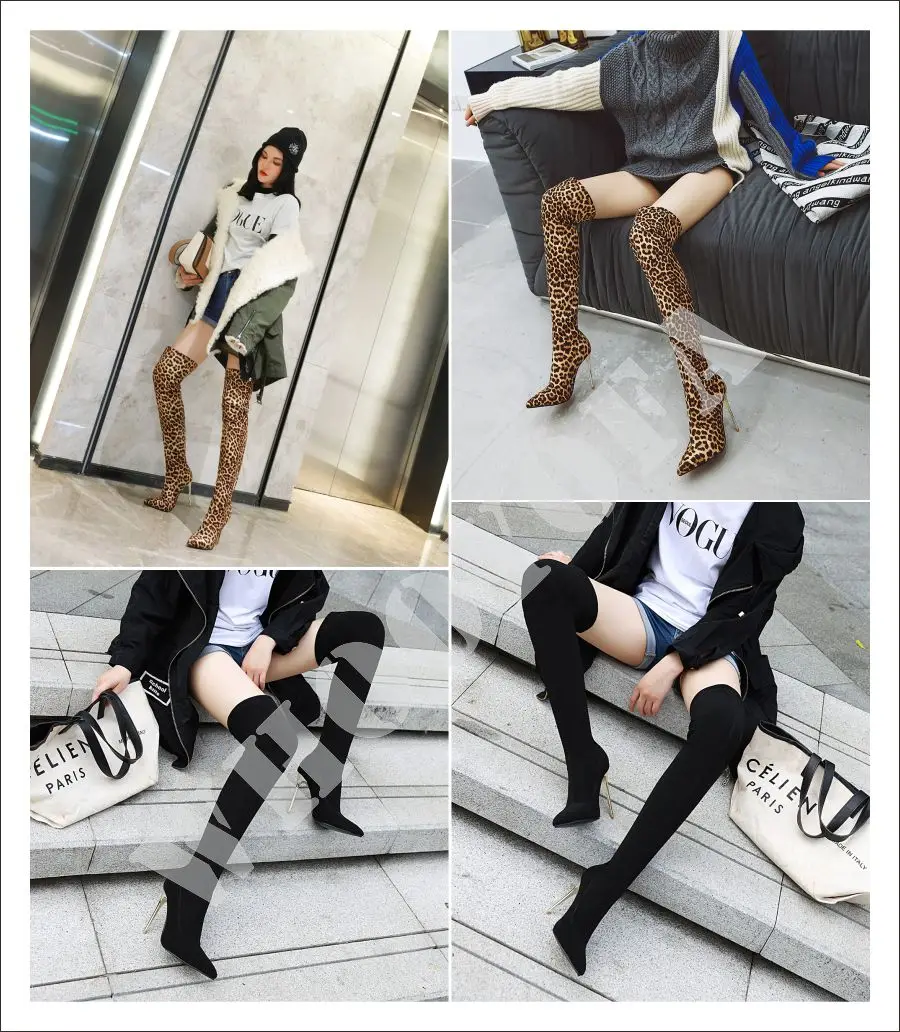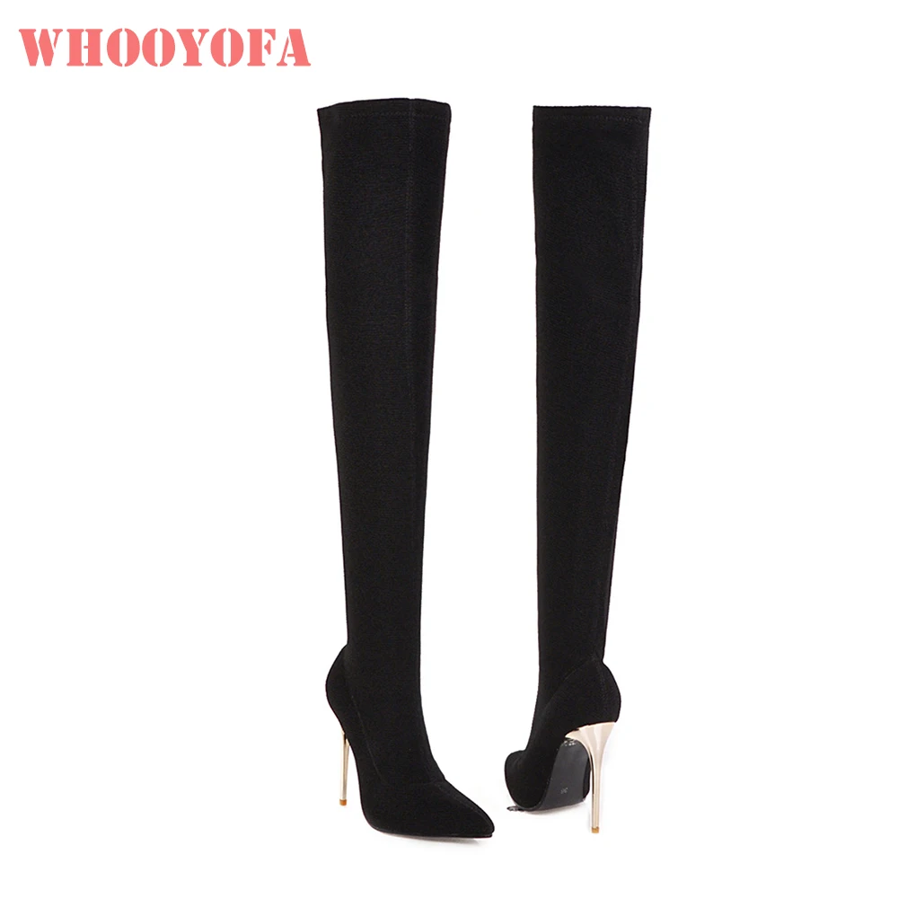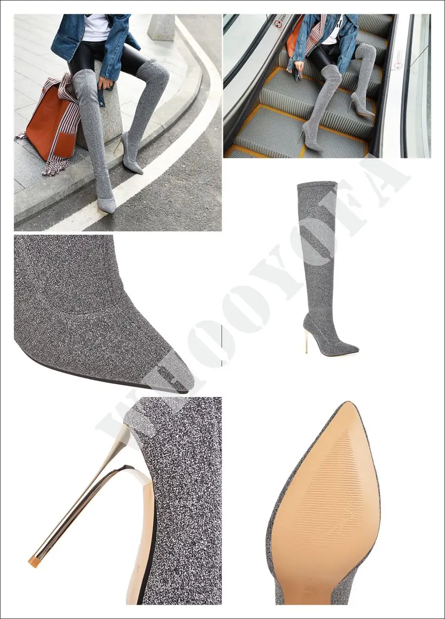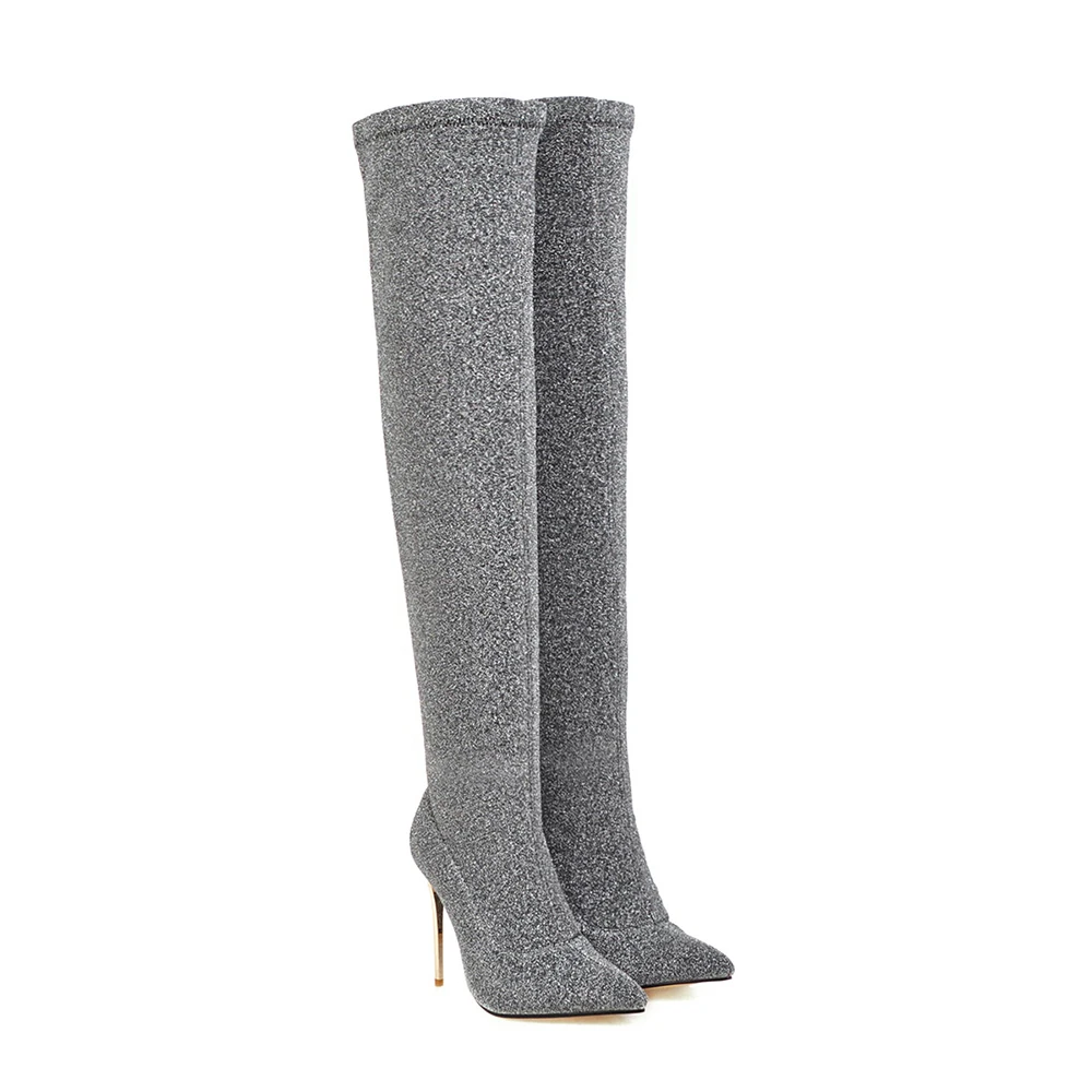 Зимние брендовые новые элегантные черные и серебристые женские сапоги до бедра Гламурная женская обувь на высоком каблуке Большие размеры 11, 43, 46, 48, WY02