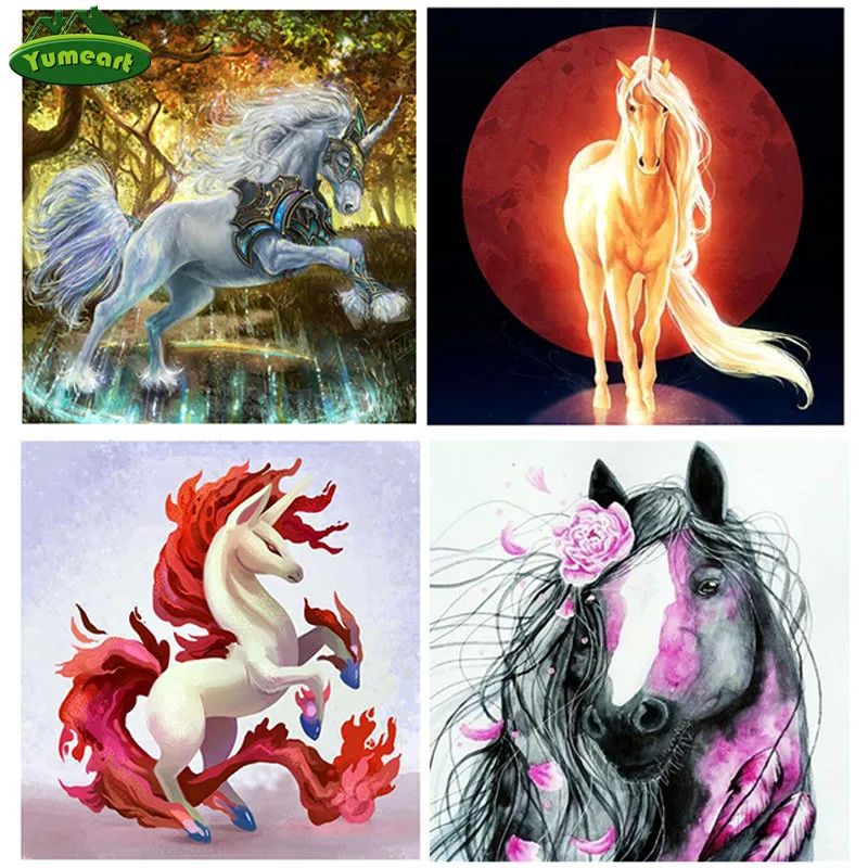 YUMEART алмазная живопись, животное, единорог, лошадь, искусственная вышивка, Кристалл Стразы, мозаика, кристалл, наклеенная картина