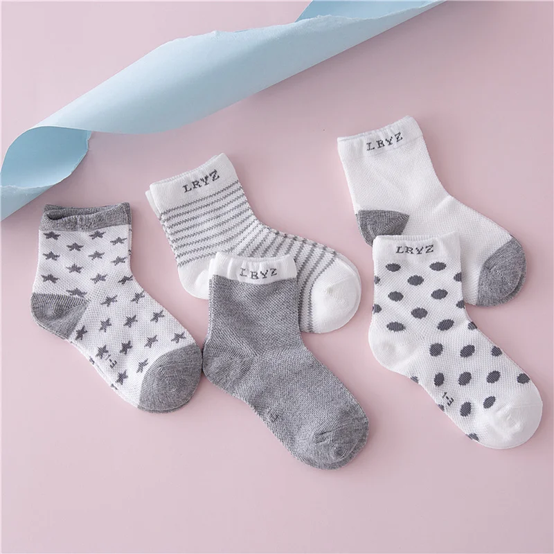 Носки детские хлопковые, в горошек, летние, в полоску, 5 пар = 10 шт.лот, От 0 до 6 лет