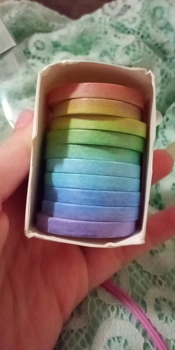 Замечательные скотчи! Беру уже во второй раз и возьму ещё. Для меня очень удобная ширина, большой выбор узора(в моём случае цвета, но в прошлый раз я брала фиолетовый набор). Я всем довольна, но предупреждаю покупателей - коробка может прийти помятой. Мне уже второй раз помятая приходит. Рулоны скотча деформируются, но на качество это никак не влияет, он не перестаёт выполнять свои функции. Для меня тут идеально всё