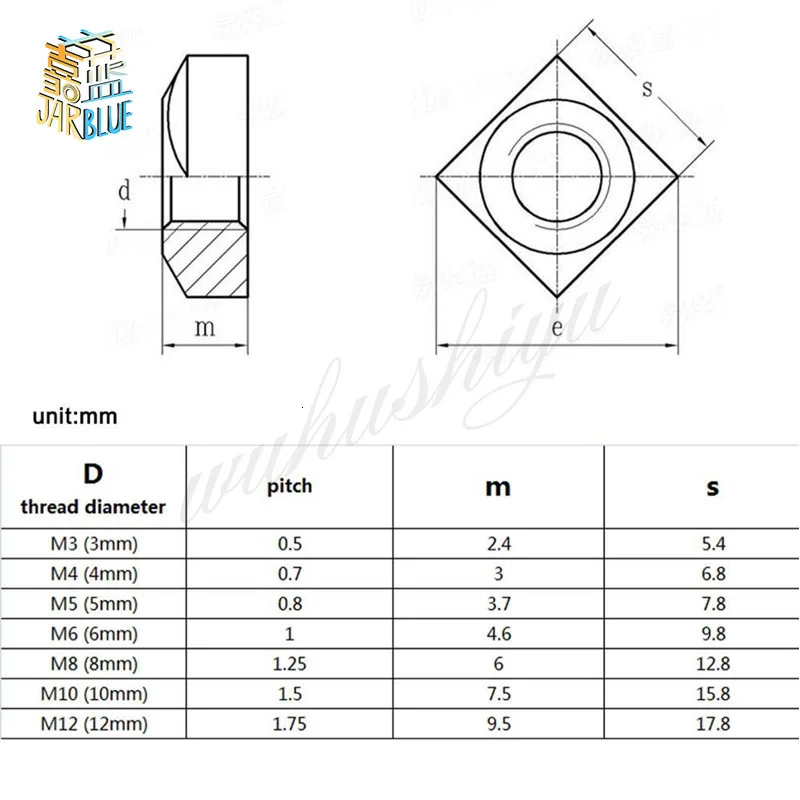 51050 шт. DIN557 GB39 M3 M4 M5 M6 M8 M10 M12 304 квадратная гайка и...