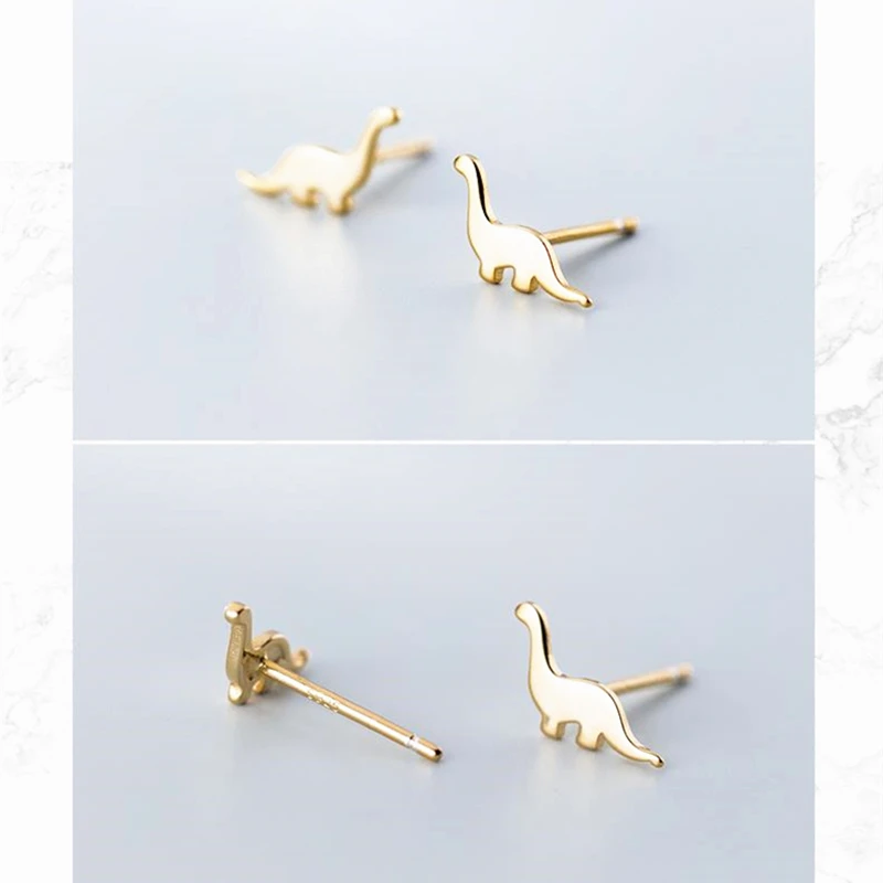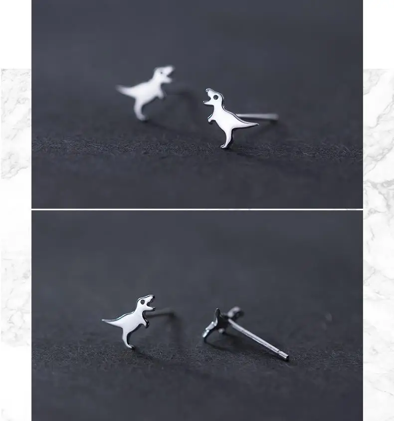 Серьги-пусеты с маленькими динозаврами, из настоящего серебра 925 пробы, для маленьких девочек