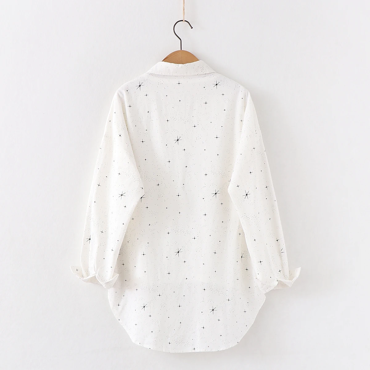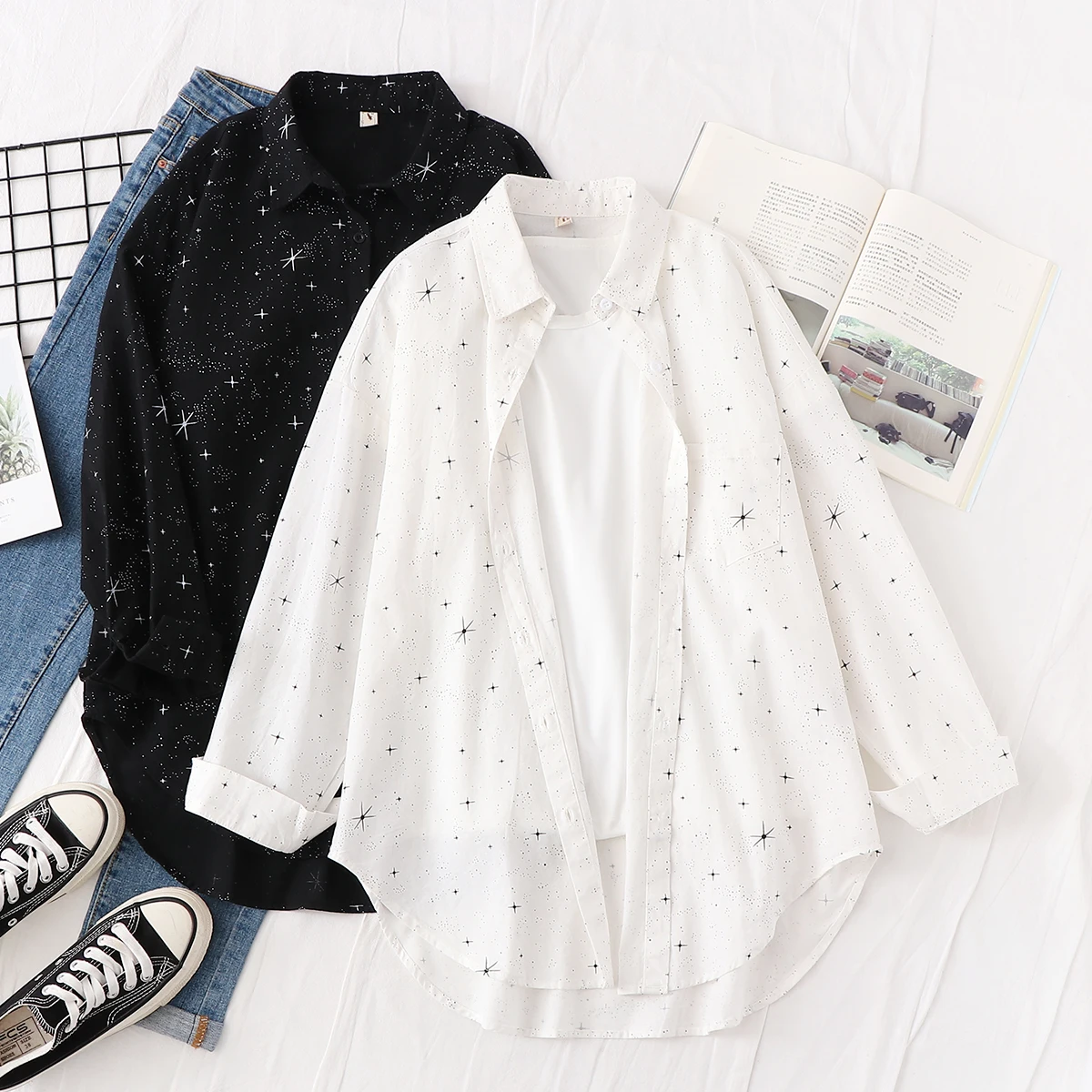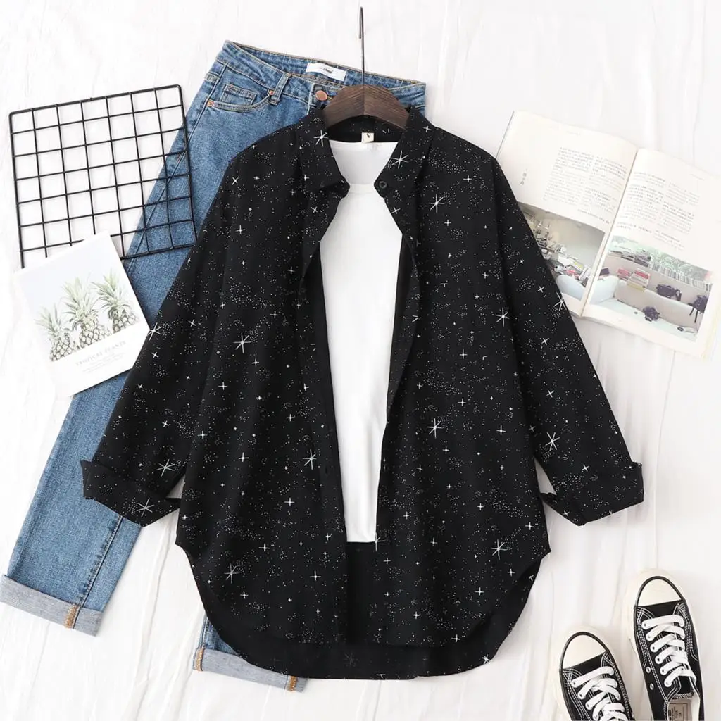 Женская хлопковая рубашка, с принтом в виде космической звезды, свободная, повседневная, большого размера, для студентов, осень 2020