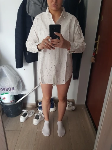 Рубашка достаточно тонкая, но при этом не светится, соответствует описанию. На 87-66-93 брала S, по размеру, сидит свободно, не в облипку, но рукава коротковаты, да и сама рубашка не очень длинная (рост: 165). но в целом покупкой довольна