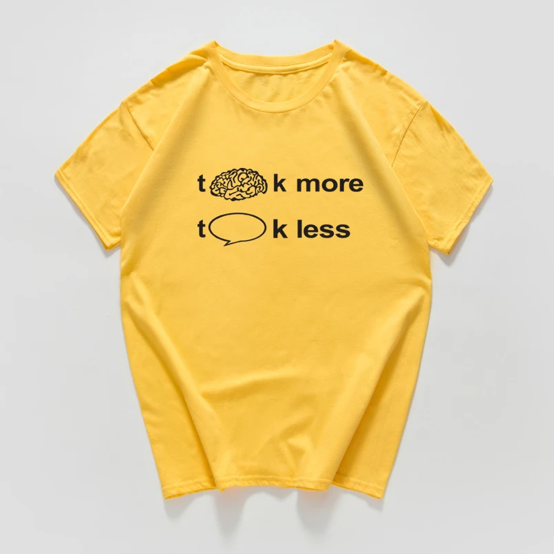 Новые модные Смешные Женские футболки с надписью "think more talk less", Женская Винтажная футболка в уличном стиле, хлопковые футболки для девочек, женские топы в стиле Харадзюку