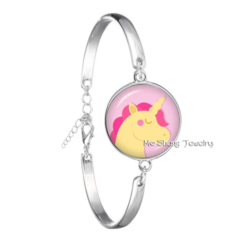 Лошадь Единорог 18 мм стекло браслеты с кабошонами цветок и единорог подвески с изображением персонажей мультфильма, унисекс, для детей, модные ювелирные изделия для влюблённых для рождественской вечеринки подарок