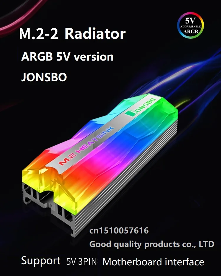 Радиатор Jonsbo M.2-2 ARGB M.2 NVME 2280, 5 В, 3 контакта, для жест...