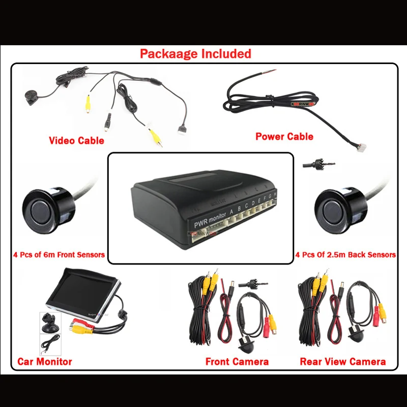 Я купил более высокий конечный диапазон передних и задних камер, но качество выхода камеры не кажется слишком хорошим. Предоставленная длина кабеля переднего датчика была слишком короткой, и я не могу использовать его. И использует 2 задних датчика спереди. Кроме того, доставка была быстрой и товар хорошо упакован.
