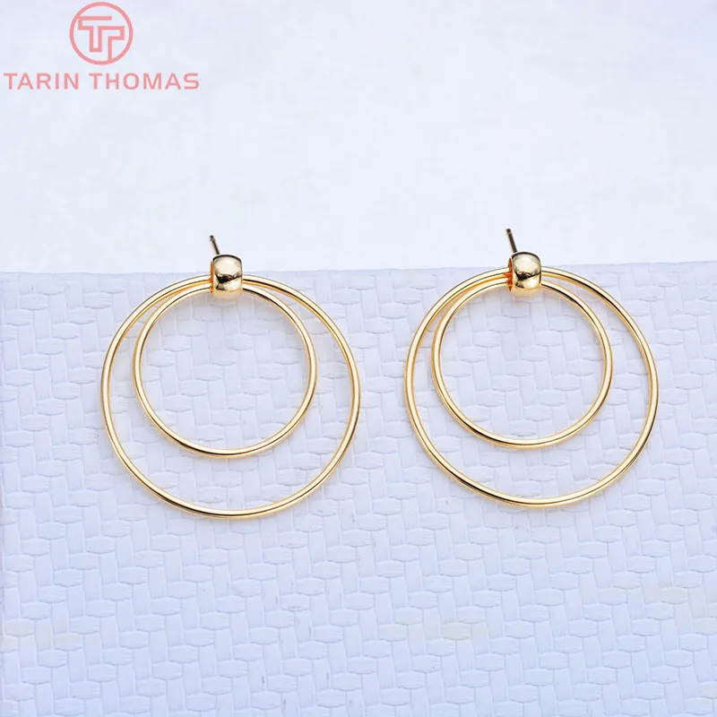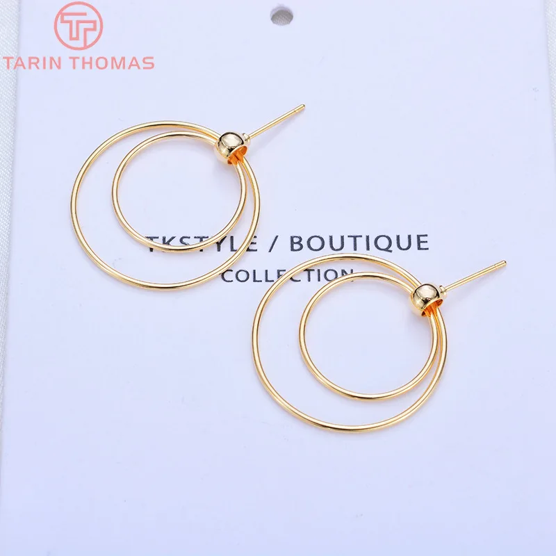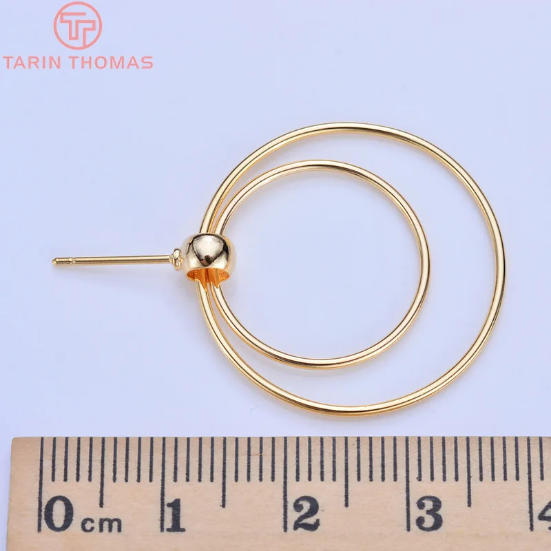 6 шт., позолоченные латунные серьги-гвоздики, 26 мм, 24 к