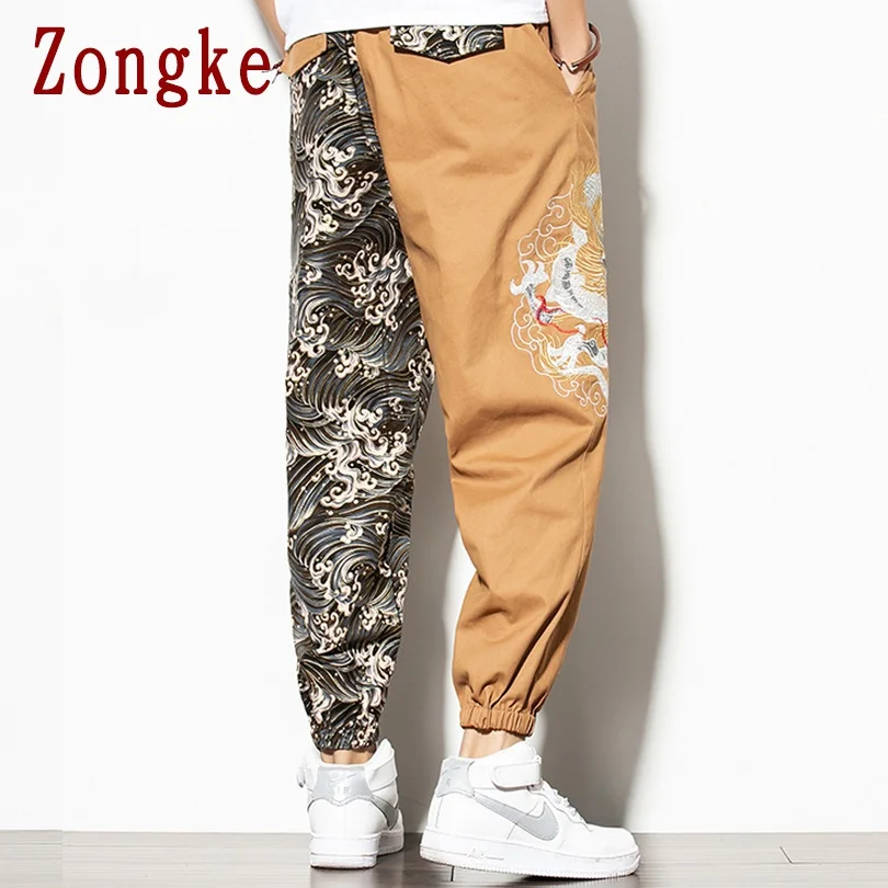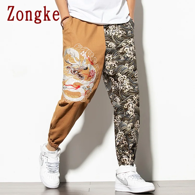 Шаровары Zongke с вышивкой дракона, мужские джоггеры, мужские брюки, Корейская уличная одежда, мужские повседневные брюки в стиле хип-хоп, модель 2022