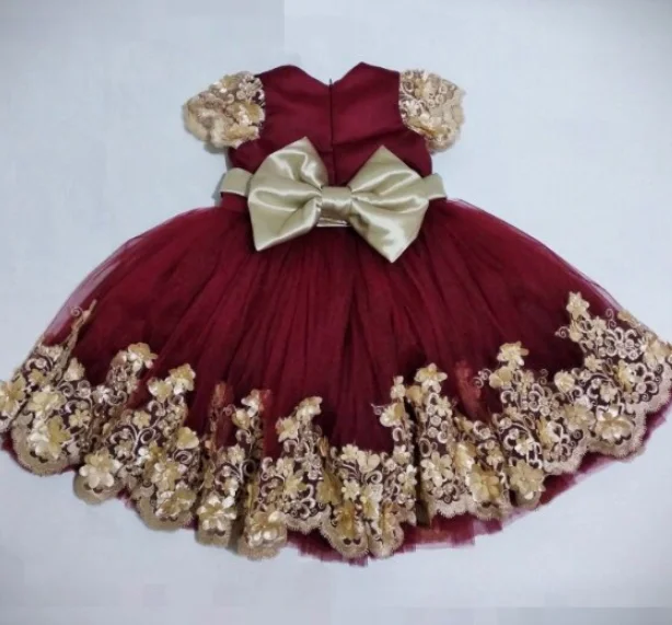 Платье для девочки с золотыми кружевами и аппликацией, с бантом и п...