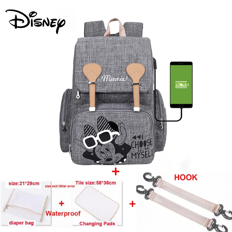 Сумка для подгузников Disney для мам, сумка для подгузников, дорожный рюкзак для детей, дизайнерская розовая и серая Сумочка с Микки и Минни