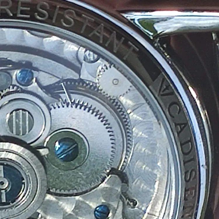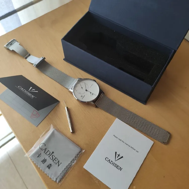 You Get What You pay for. Я не уверен, что у меня есть механизм Seagull, потому что у меня есть несколько, и я не вижу совпадений (см. Фото), и если он несет его, он не очень хорошо отрегулирован: с чрезмерной ошибкой скручивания 1,1 мс, хотя абсолютно загруженная точность более чем приемлема (от 4 до 8 секунд/день). Стекло твердого кабеля затрудняет хорошую видимость. Я не ожидал, что он будет таким толстым, хотя цвет лучше в прямом эфире, очень элегантный белый жемчуг. Индикатор заряда не может быть перенесен на максимум. Тем не менее, я даю ему 4 звезды за хорошее соотношение цены и качества (с купонами я заплатил 64 €). Общение с продавцом не было необходимости, и время доставки было менее трех недель. Это моя вторая коробка, которую я покупаю в этом магазине, и я рекомендую продавца и товар.