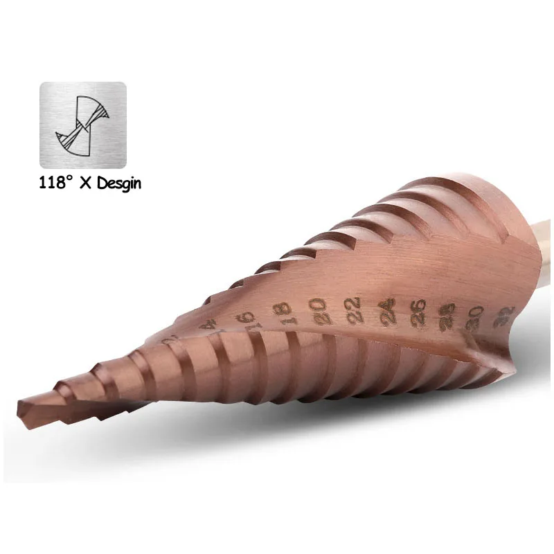 Кобальтовое ступенчатое сверло HSS M35, 4-124-204-32 мм, треугольный хвостовик, высокоскоростные стальные сверла, спиральный паз для нержавеющей стали 304