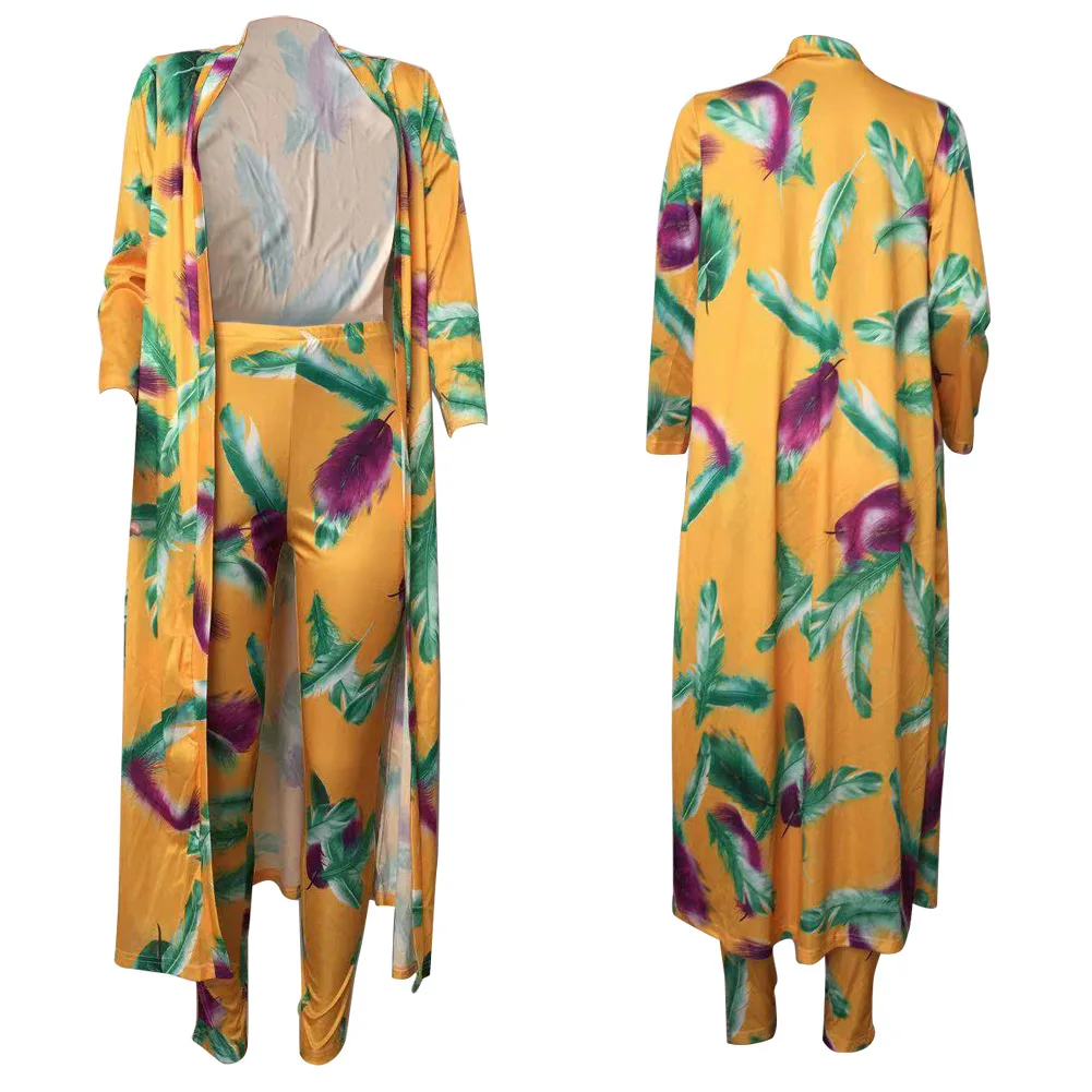 Женский комплект из 2 предметов, кардиган, длинный Тренч, топ и облегающие штаны, повседневная одежда в стиле бохо, сексуальные наряды из двух предметов для лета и осени 2020