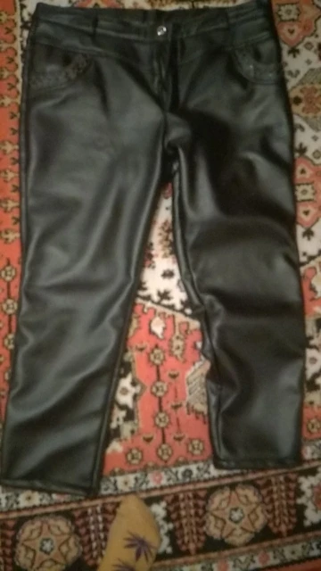 Это ужасный дермантин! Все хорошо-пошив, качество, но качество искусственной кожи МРАК!!! Сейчас такие материалы, что не отличишь от кожи. Я брала здесь тонкие это класс брюки, но эти... Не Берите!