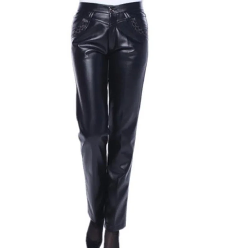 Брюки кожаные, с высокой талией, большие размеры, 9xl