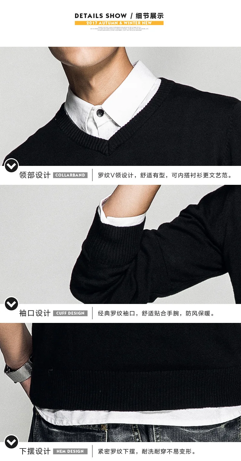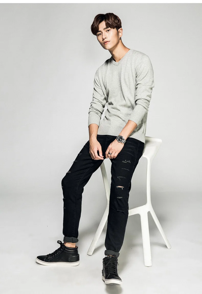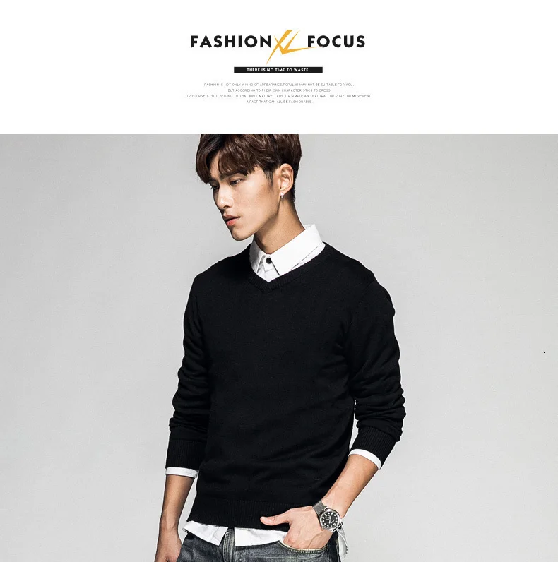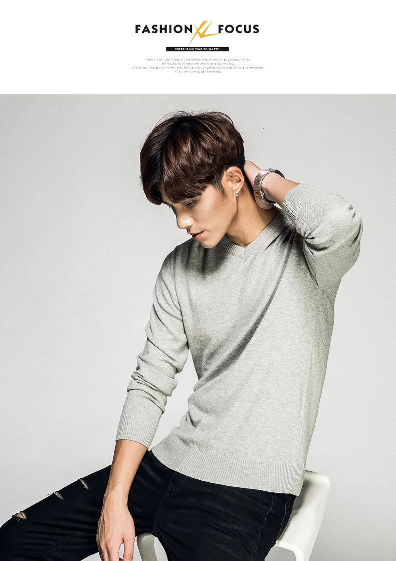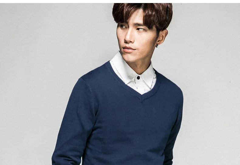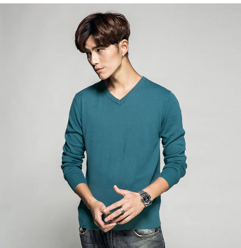 Мужской пуловер из 2019 хлопка, с V-образным вырезом и длинным рука...
