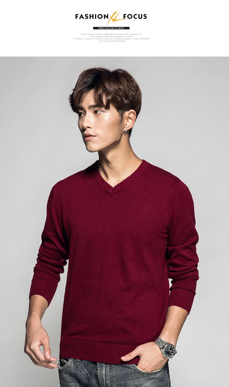 Хлопковый пуловер, свитер, мужской, однотонный, с V-образным вырезом, Осень-зима 2019, пуловеры с длинными рукавами, Повседневный свитер для мужчин M-3XL