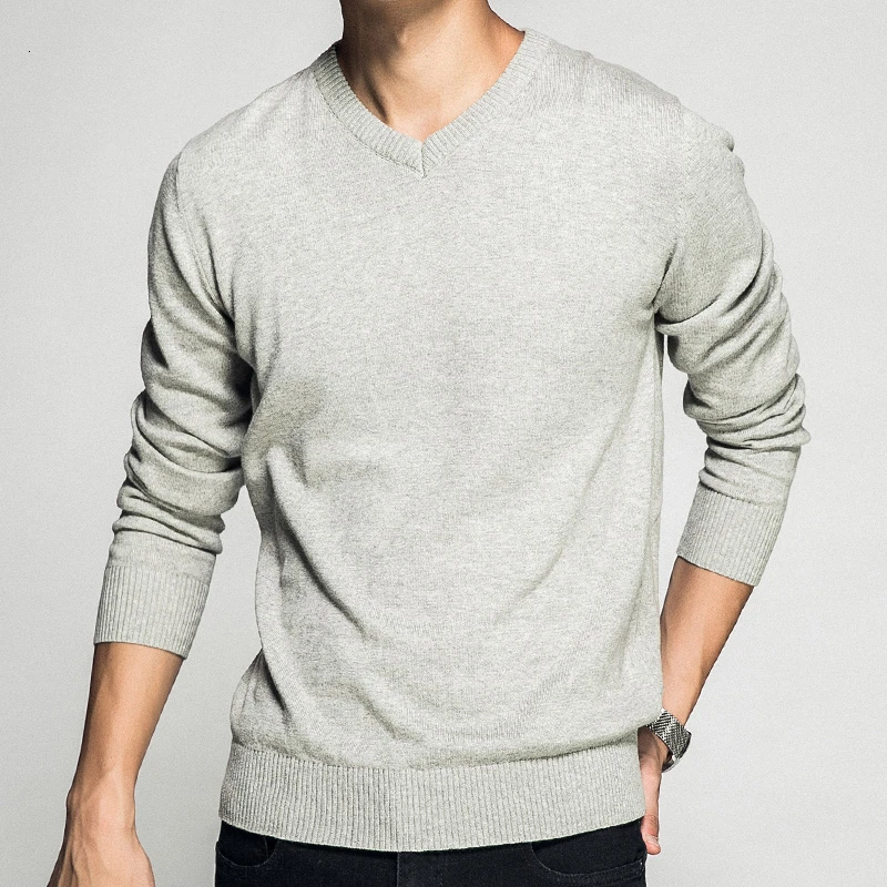 Мужской пуловер с V-образным вырезом, Однотонный свитер из 100% хло...