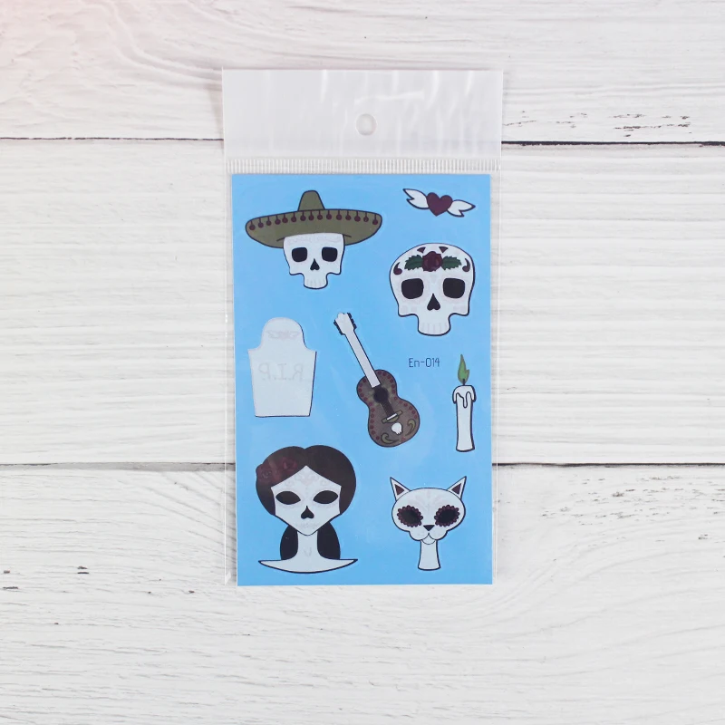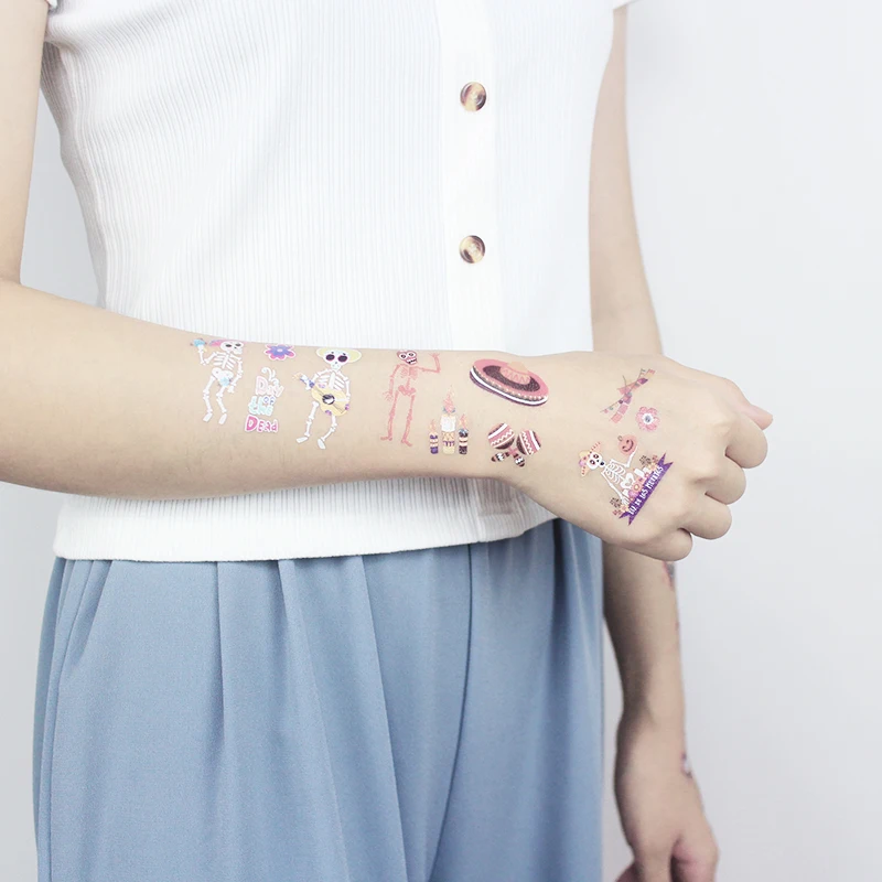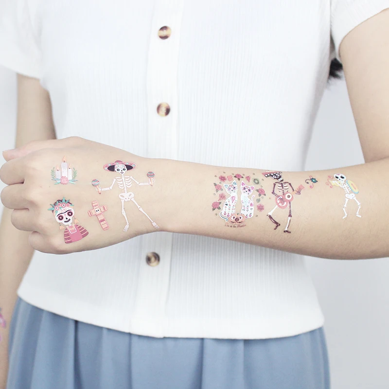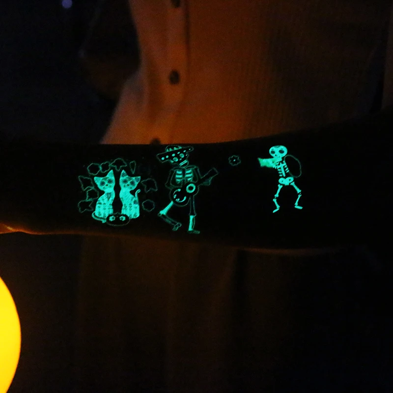 24 вида светящихся временных татуировок, День мертвых, Мультяшные н...