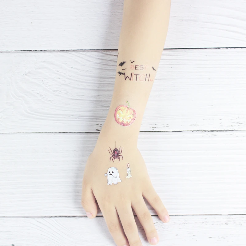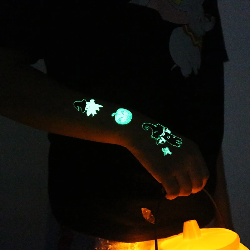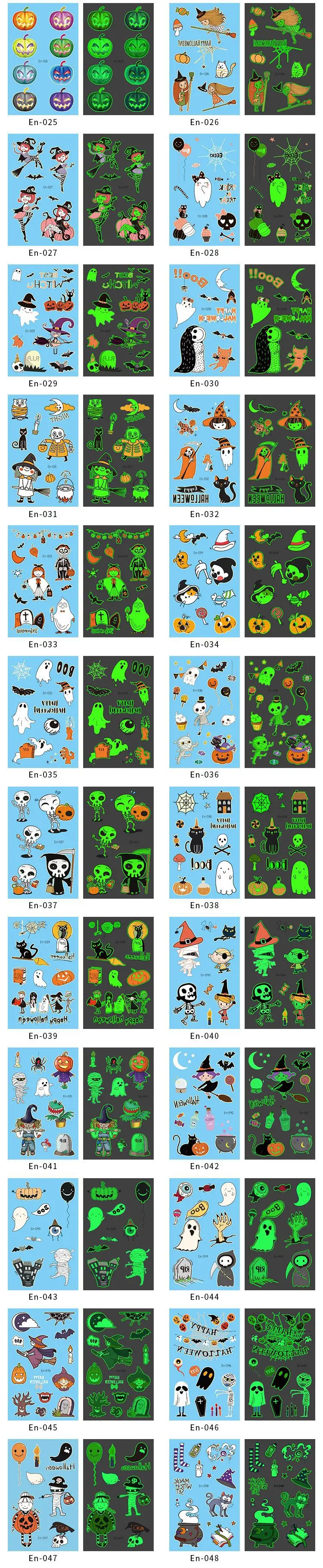 Светящаяся татуировка на Хэллоуин наклейка для детей странное поведение тыква летучая мышь кошка призрак узор блестящая Временная детская Татуировка RA037