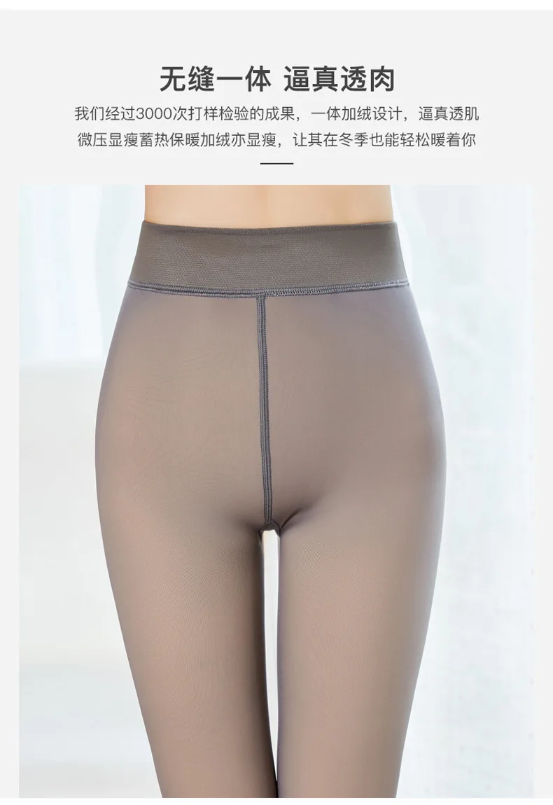 Поддельные полупрозрачные чулки, теплые флисовые Колготки, плотные ...
