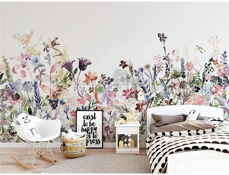 3D-обои на заказ, Современные Простые росписи вручную, настенные Стикеры с цветами для гостиной, телевизора, дивана, спальни, в скандинавском стиле, домашний декор