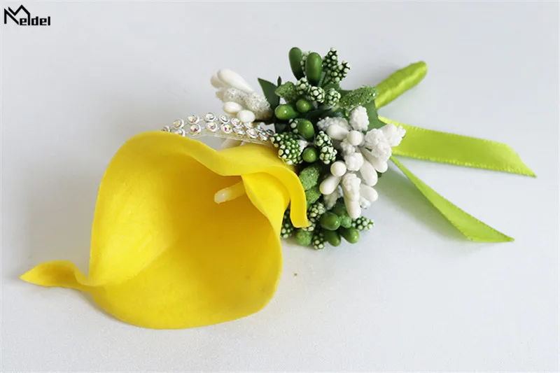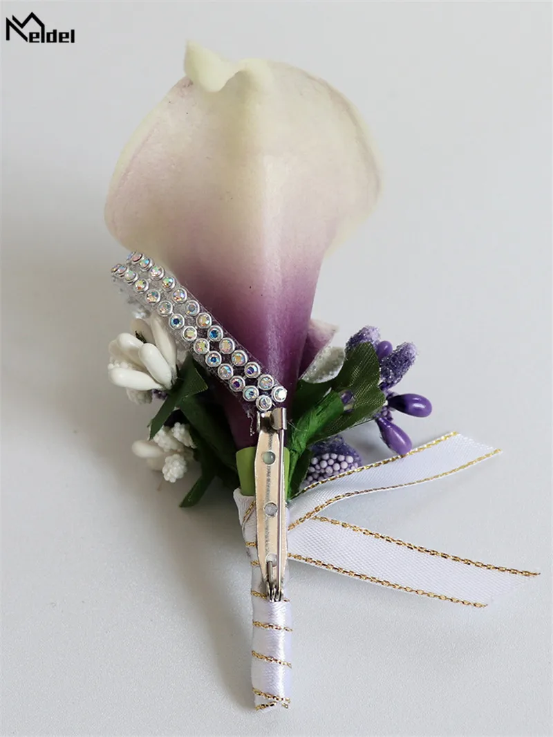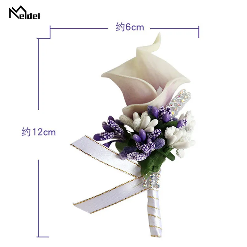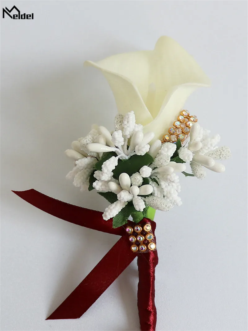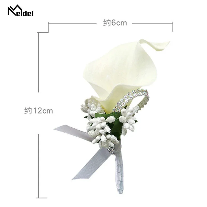 Meldel Свадебные бутоньерка, жених, брошь на застежке, для свадьбы, корсажи и бутоньерки белый закругленные петлицы-PU Калла человек брак аксессуары
