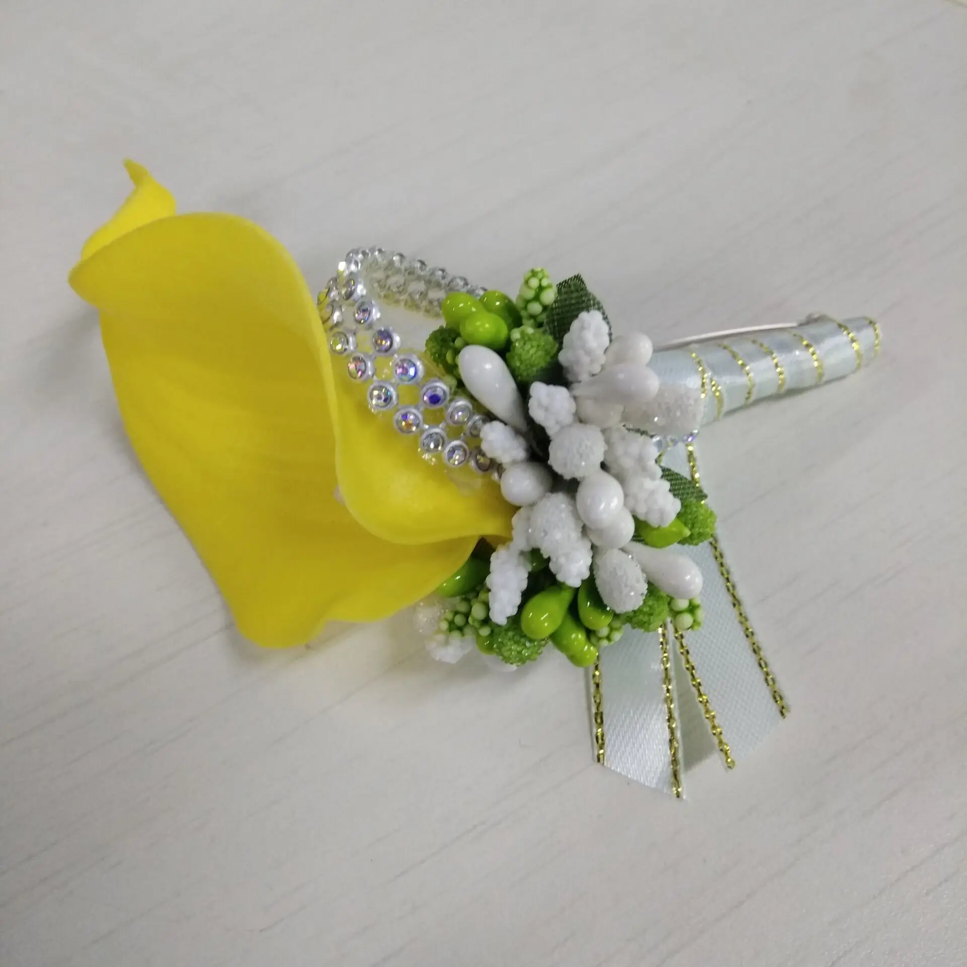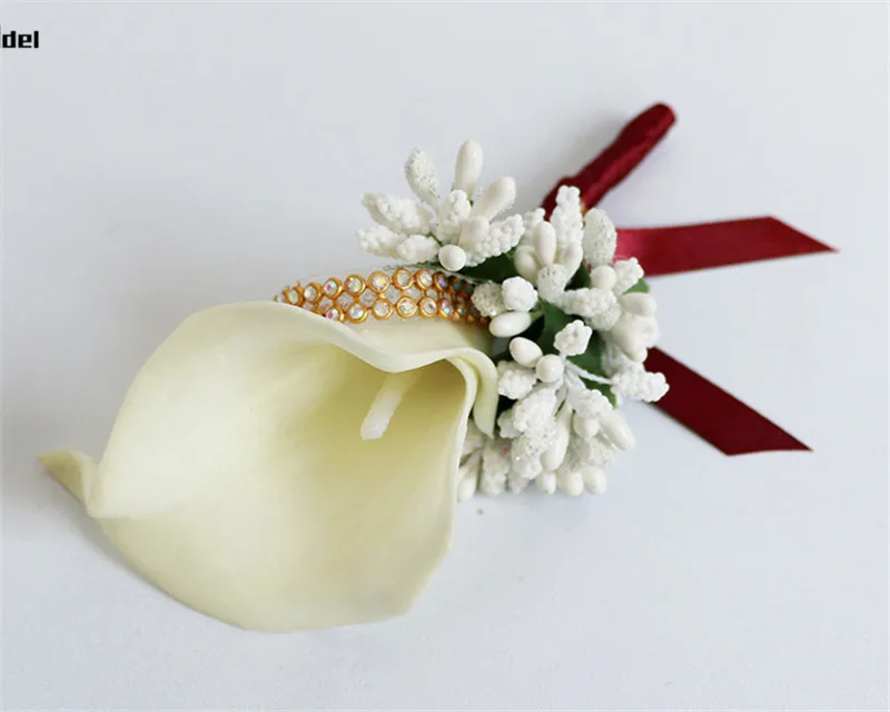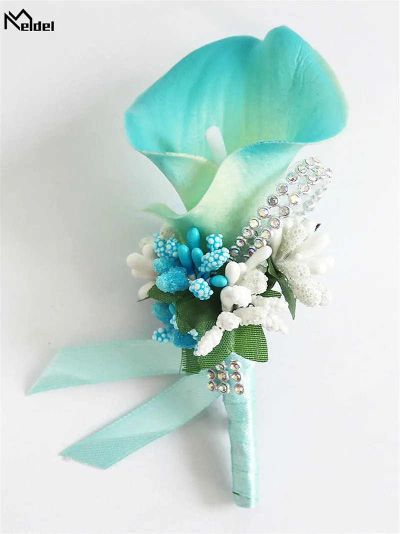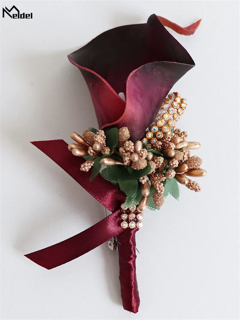 Meldel Свадебные бутоньерка, жених, брошь на застежке, для свадьбы, корсажи и бутоньерки белый закругленные петлицы-PU Калла человек брак аксессуары