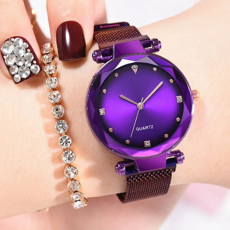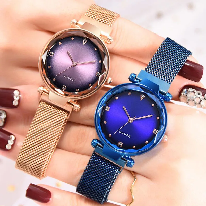 Часы наручные женские с градиентным циферблатом и магнитной пряжкой