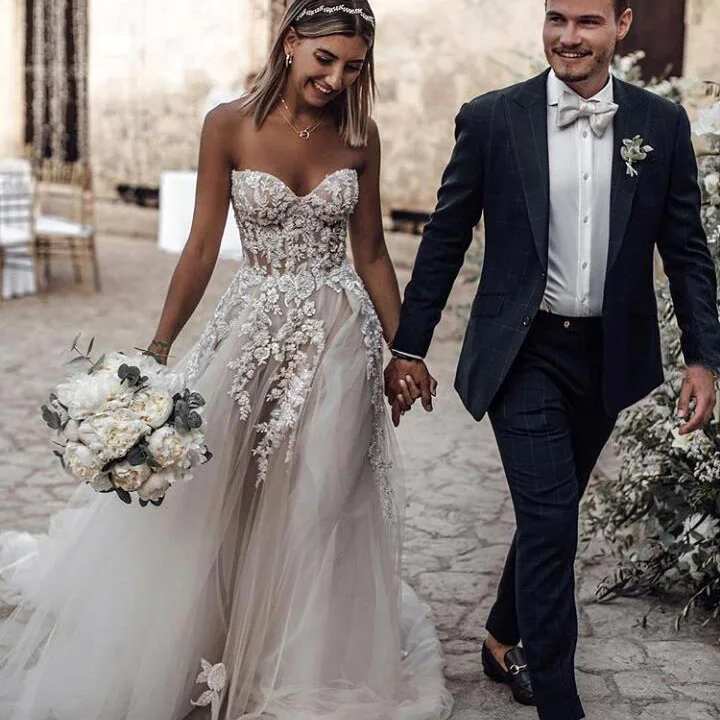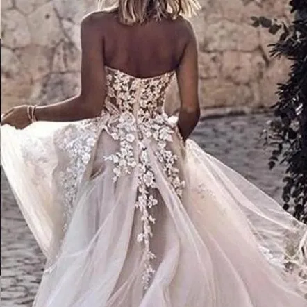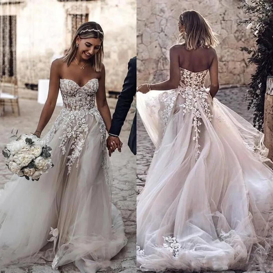Богемные платья невесты иллюзия тюль 3d-цветочная аппликация сердечком открытая спина трапеция Длинные свадебные платья rochii mireasa