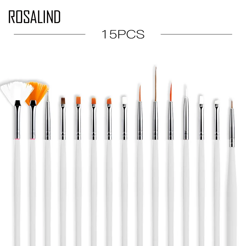 ROSALIND 15 шт. кисти для ногтей для раскрашивания Удлинительный УФ-гель дизайн ногтей акриловый порошок Маникюрный Инструмент маникюрные щетки