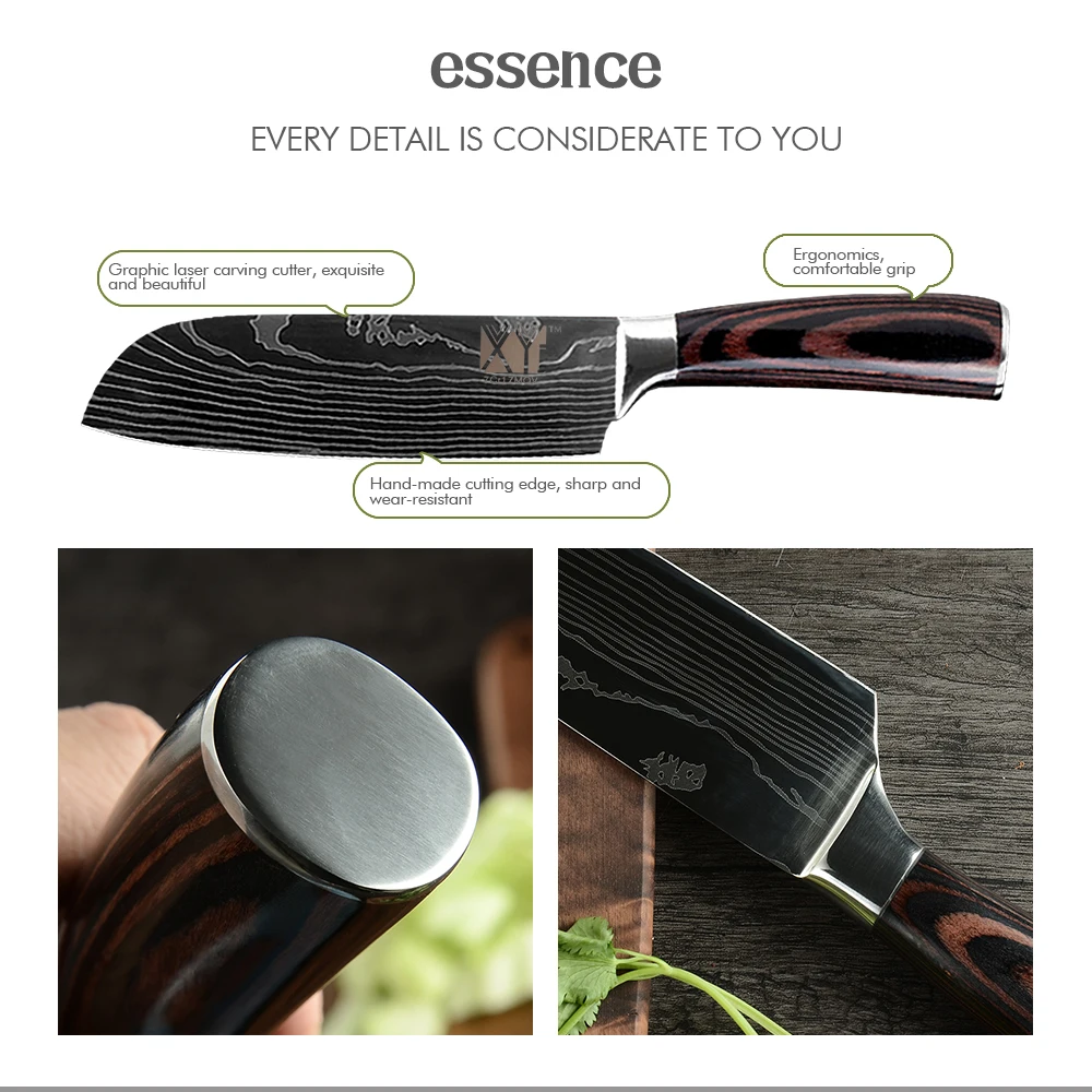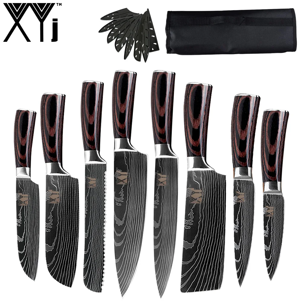 Набор японских кухонных ножей XYj, нож шеф-повара с лазерным узором...