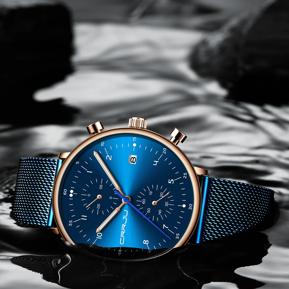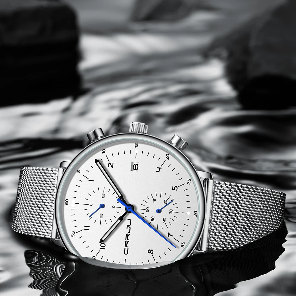 Часы CRRJU мужские наручные кварцевые, роскошные брендовые водонепроницаемые в стиле милитари, из нержавеющей стали, с датой