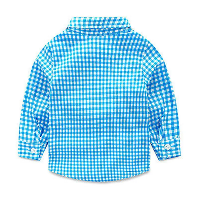 2016 новая голубая одежда в клетку для маленьких мальчиков с бантом...