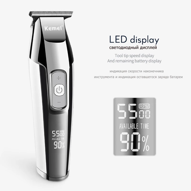 Перезаряжаемая машинка для стрижки волос Kemei для мужчин, профессиональный электрический триммер для волос, бритвенный станок с ЖК-дисплеем, машинка для стрижки волос, машинка для стрижки волос