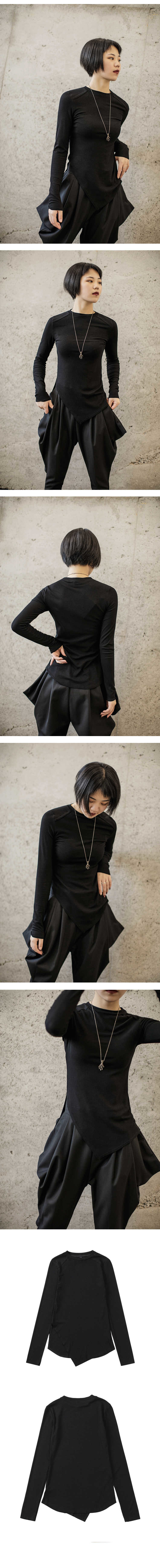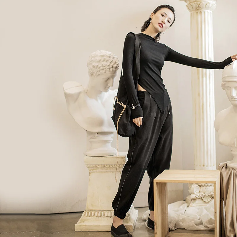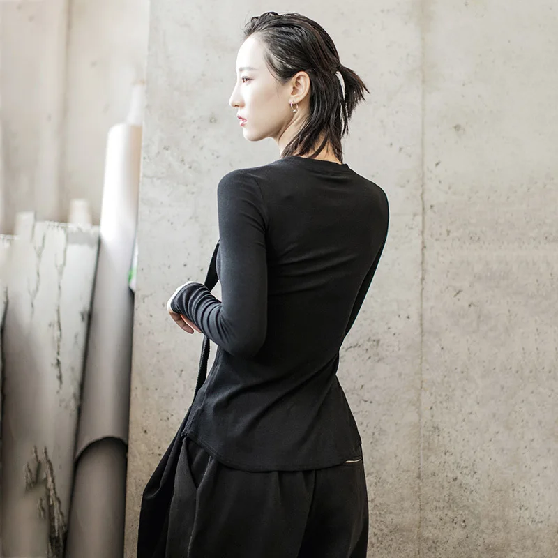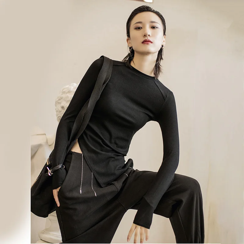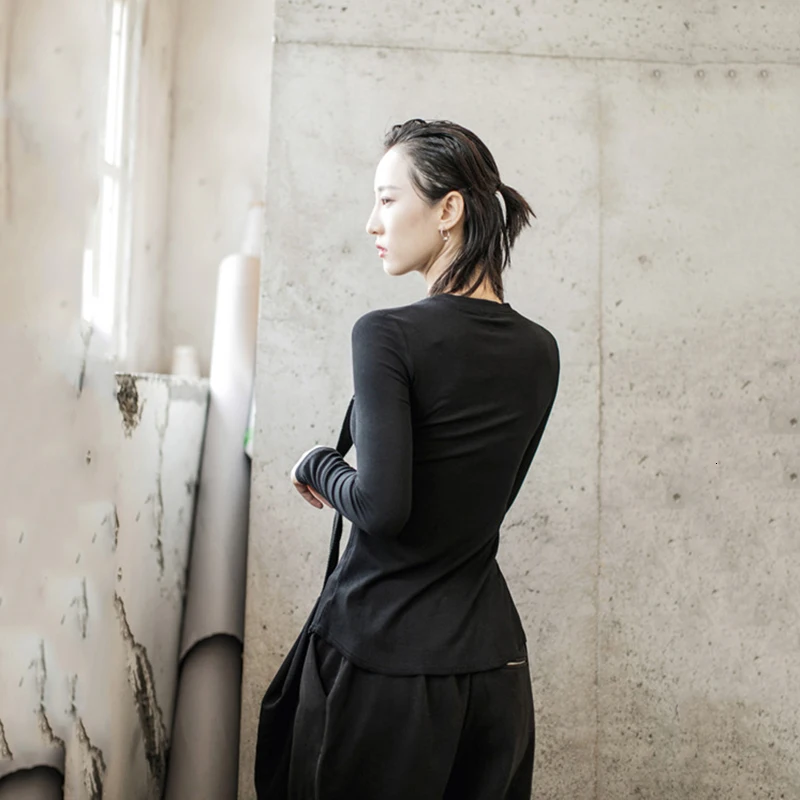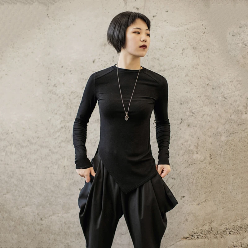 Женская Асимметричная футболка EAM, Асимметричная футболка с круглым вырезом и длинным рукавом, весна-осень 2022, 1H312