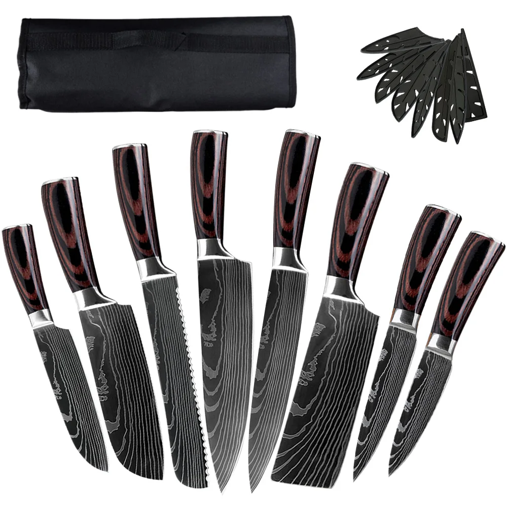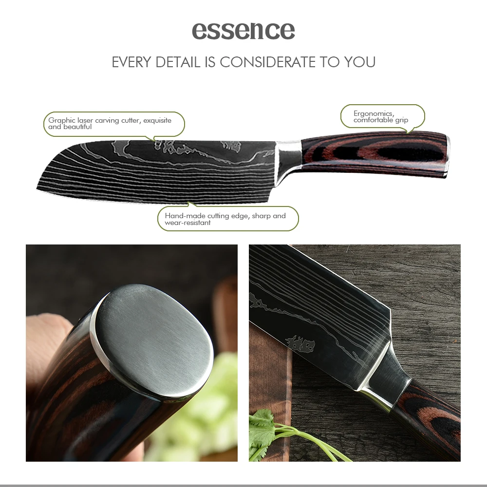Набор кухонных ножей, из нержавеющей стали, с лазерным узором, дама...